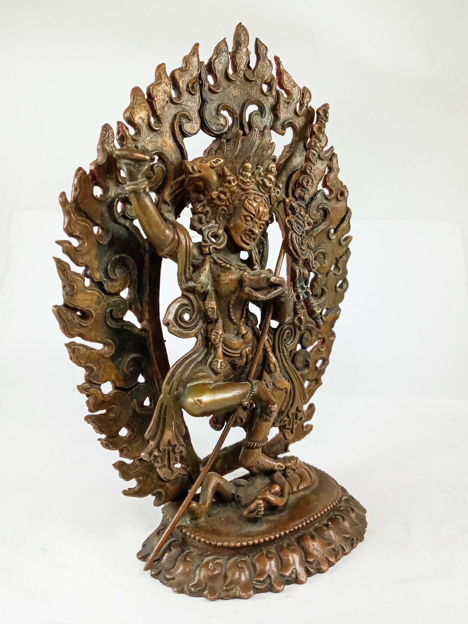 By imitating the natural aging process, the chocolate color antique patina lends an air of authenticity and vintage charm to the Vajravarahi. This carefully crafted finish ensures that the patina remains intact for an extended period, offering longevity and resistance to wear. The result is a unique piece that captures the essence of a time-worn copper statue, evoking a sense of history and artistic heritage.