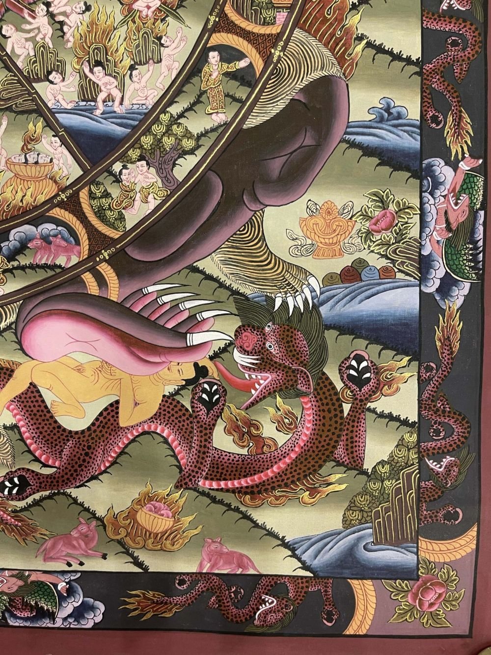 Buddhist Hand Painted Thangka of Wheel of Life, Lamas Art