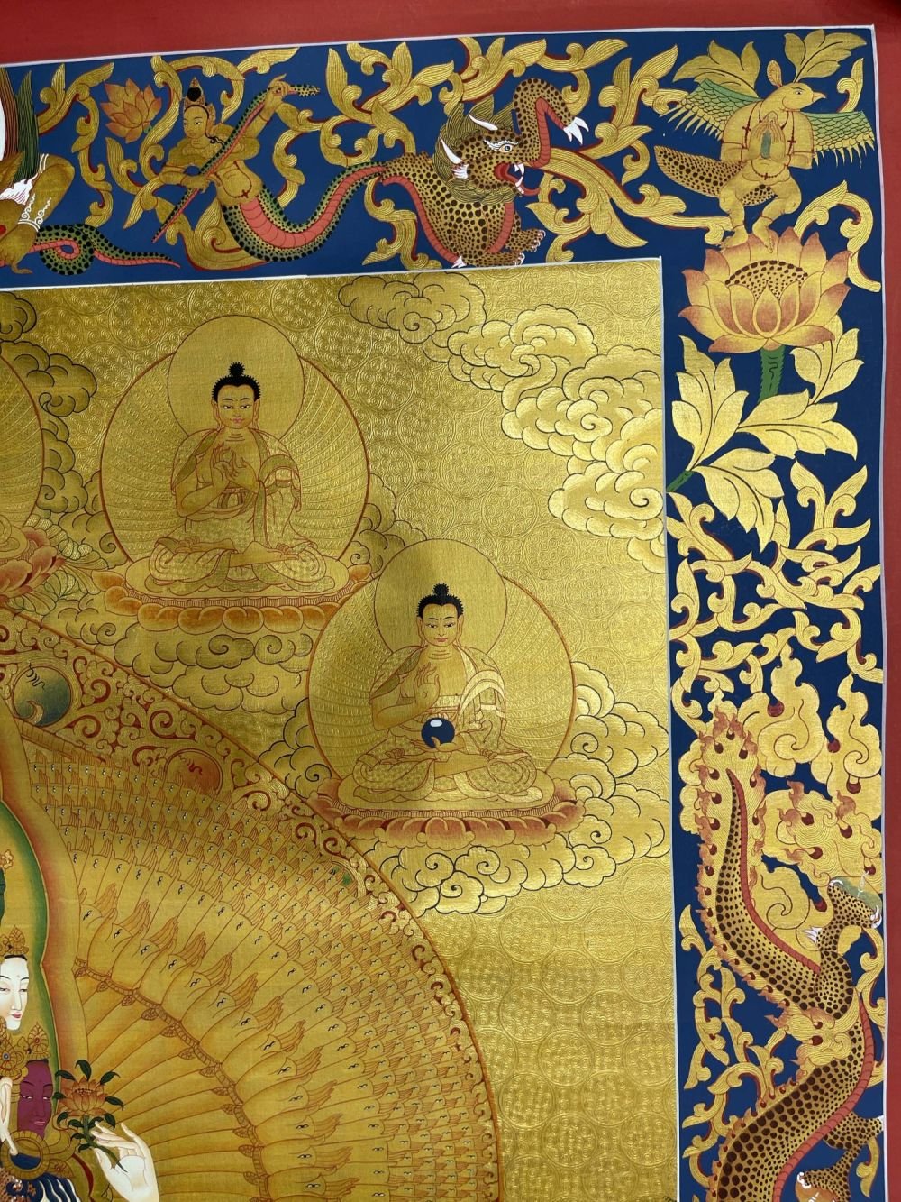 Buddhist Hand Painted Thangka of Sahasrabhuja Avalokitesvara, Real Gold, Lamas Art |