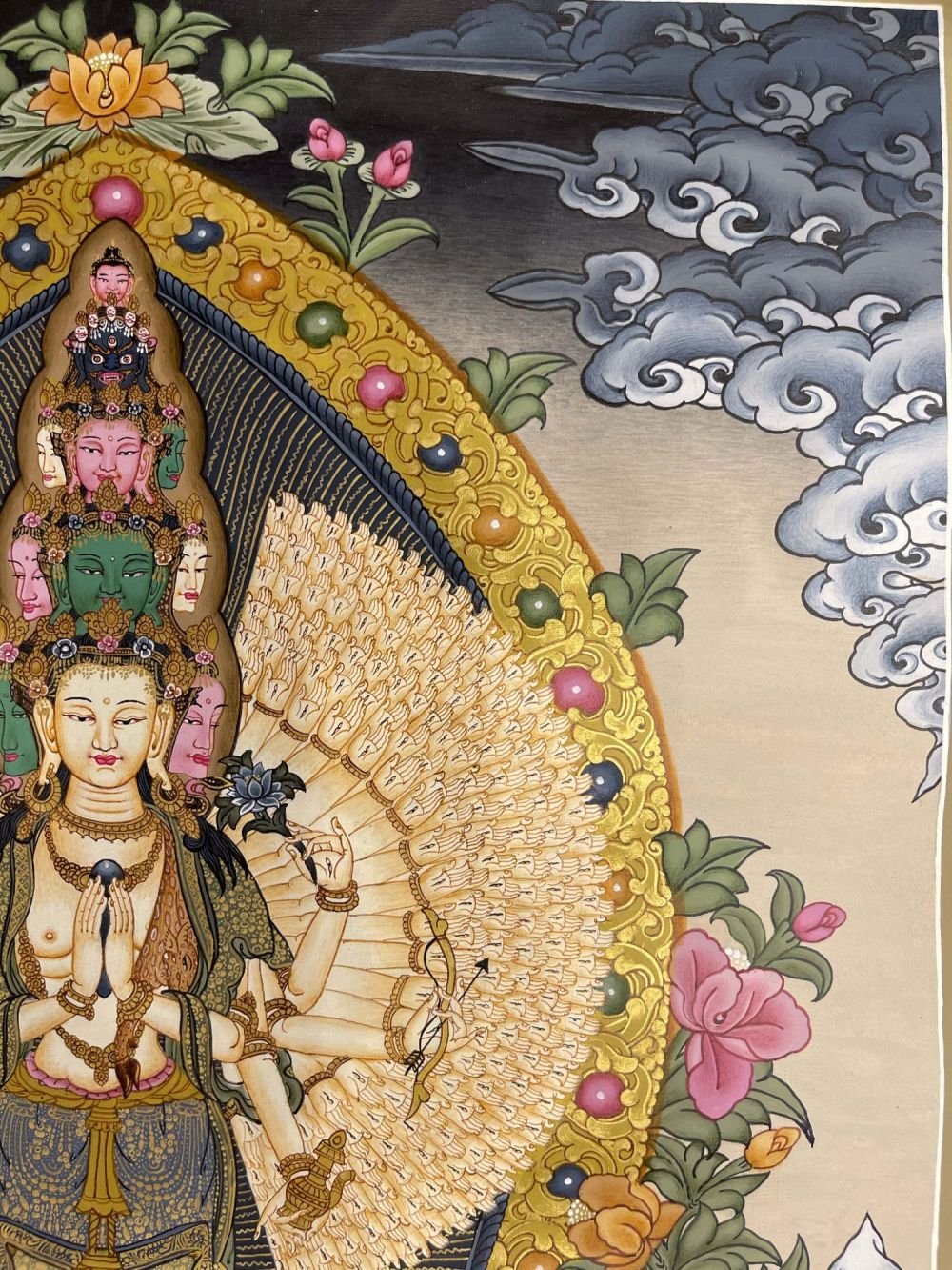 Buddhist Hand Painted Thangka of Sahasrabhuja Avalokitesvara, Lamas Art |