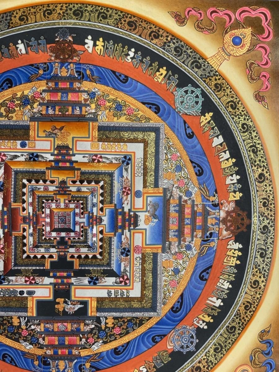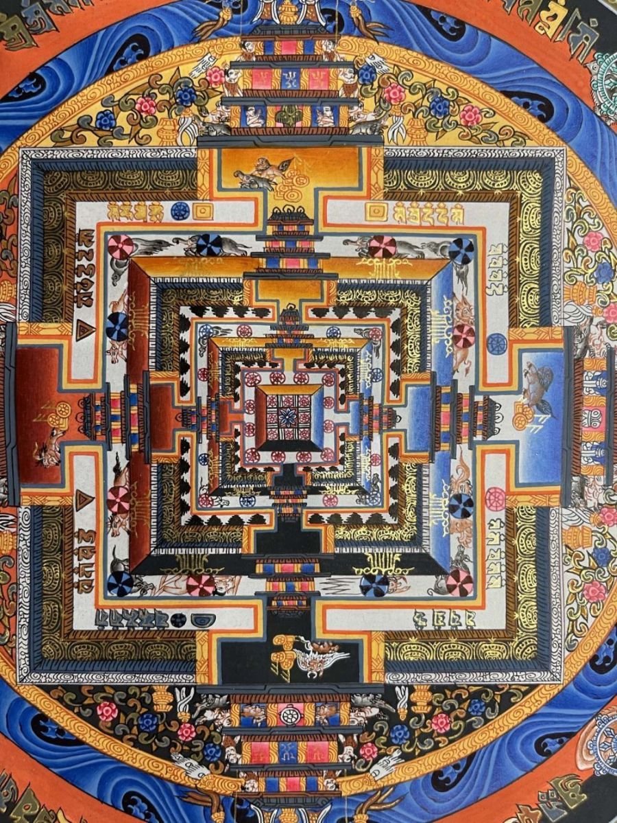 Buddhist Hand Painted Thangka of Kalachakra Mandala, LamasArt, Square Mandala |