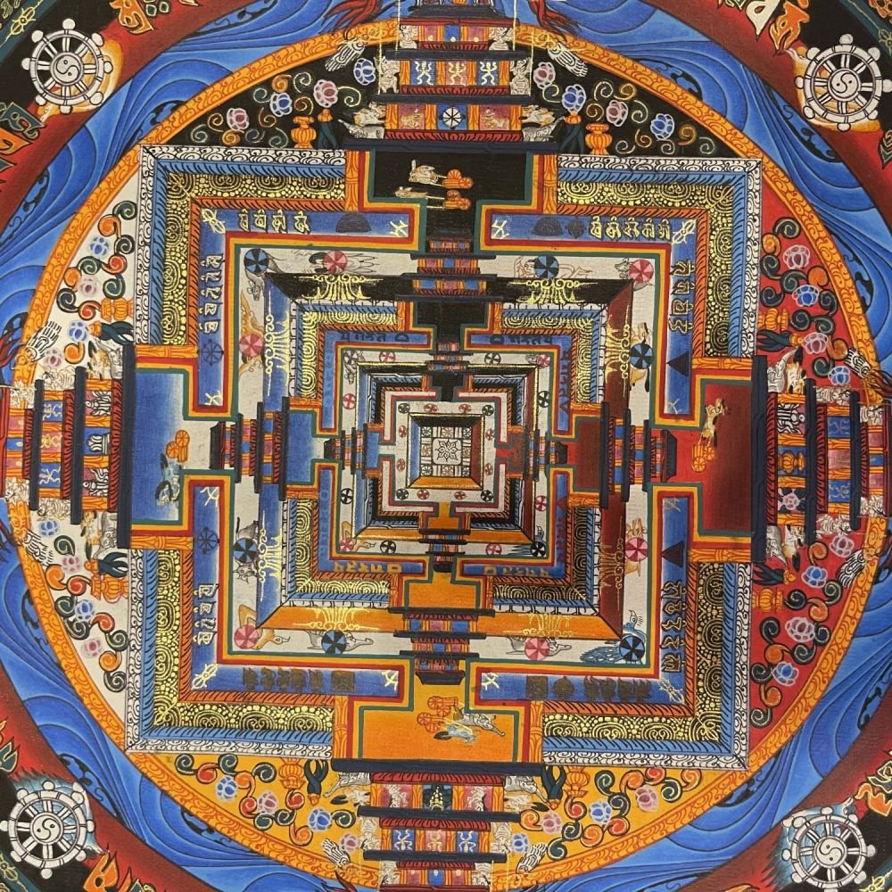 Buddhist Hand Painted Thangka of Kalachakra Mandala, LamasArt, Square Mandala |