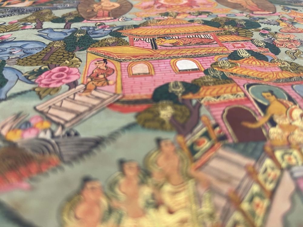 Buddhist Hand Painted Thangka of Buddha Life Story, Lamas Art |