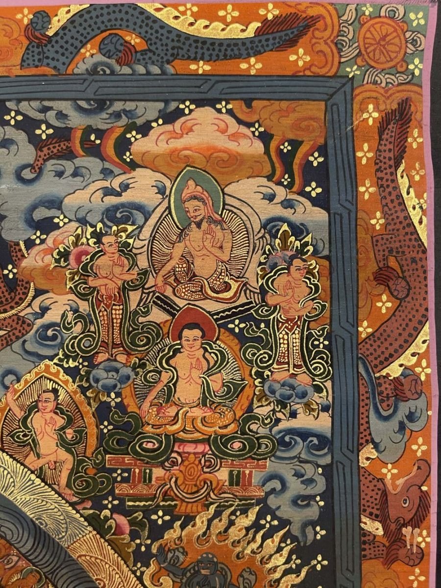A thangka, also known as tangka, thanka, or tanka, is a vibrant and intricate Tibetan Buddhist painting that serves as a visual representation of spiritual teachings. Crafted with meticulous detail on cotton or silk appliqué, thangkas depict a wide range of subjects including Buddhist deities, sacred scenes, mandalas, and narrative stories. These sacred artworks are traditionally kept unframed and rolled up for storage, resembling ancient scrolls. To protect their delicate nature, thangkas are mounted on textile backings and often adorned with a silk cover on the front. Proper preservation in dry environments is crucial to maintain the integrity and longevity of the silk. Read More