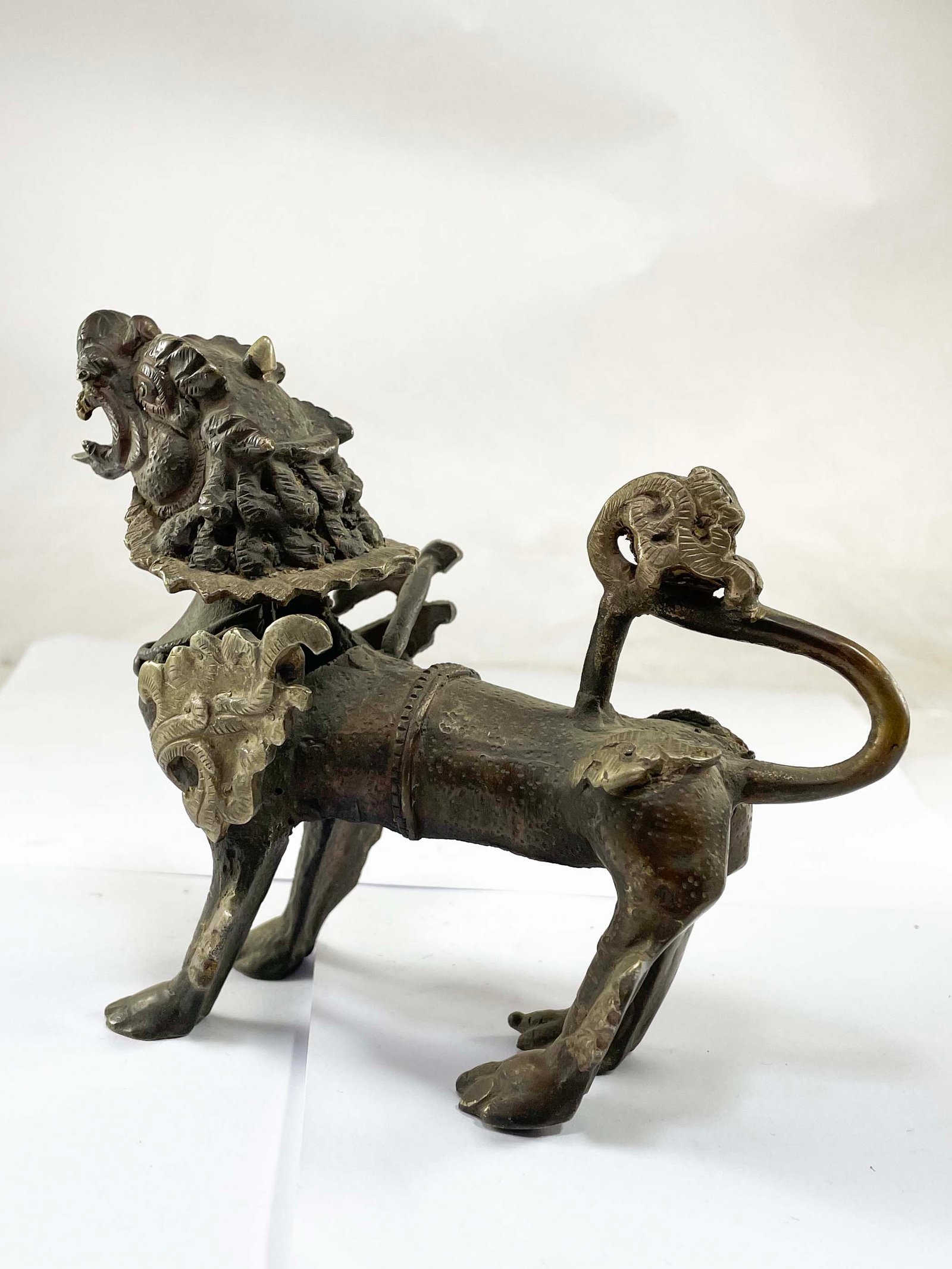 This Temple Lion is made by the process of the Lost-Wax system. The lost-wax process, also known as investment casting, is a time-honored technique used to create metal sculptures. It involves several steps that have been practiced for thousands of years. Skilled artisans begin by sculpting a detailed wax model, capturing every intricate detail of the desired sculpture. The wax model is then coated with a ceramic shell, formed by multiple layers of ceramic material. Once the shell has cured, the wax is melted and drained out, leaving behind a cavity. Molten metal is poured into the cavity, creating a precise replica of the original wax model. After the metal has cooled and solidified, the ceramic shell is carefully removed, revealing the final metal sculpture. Read More
