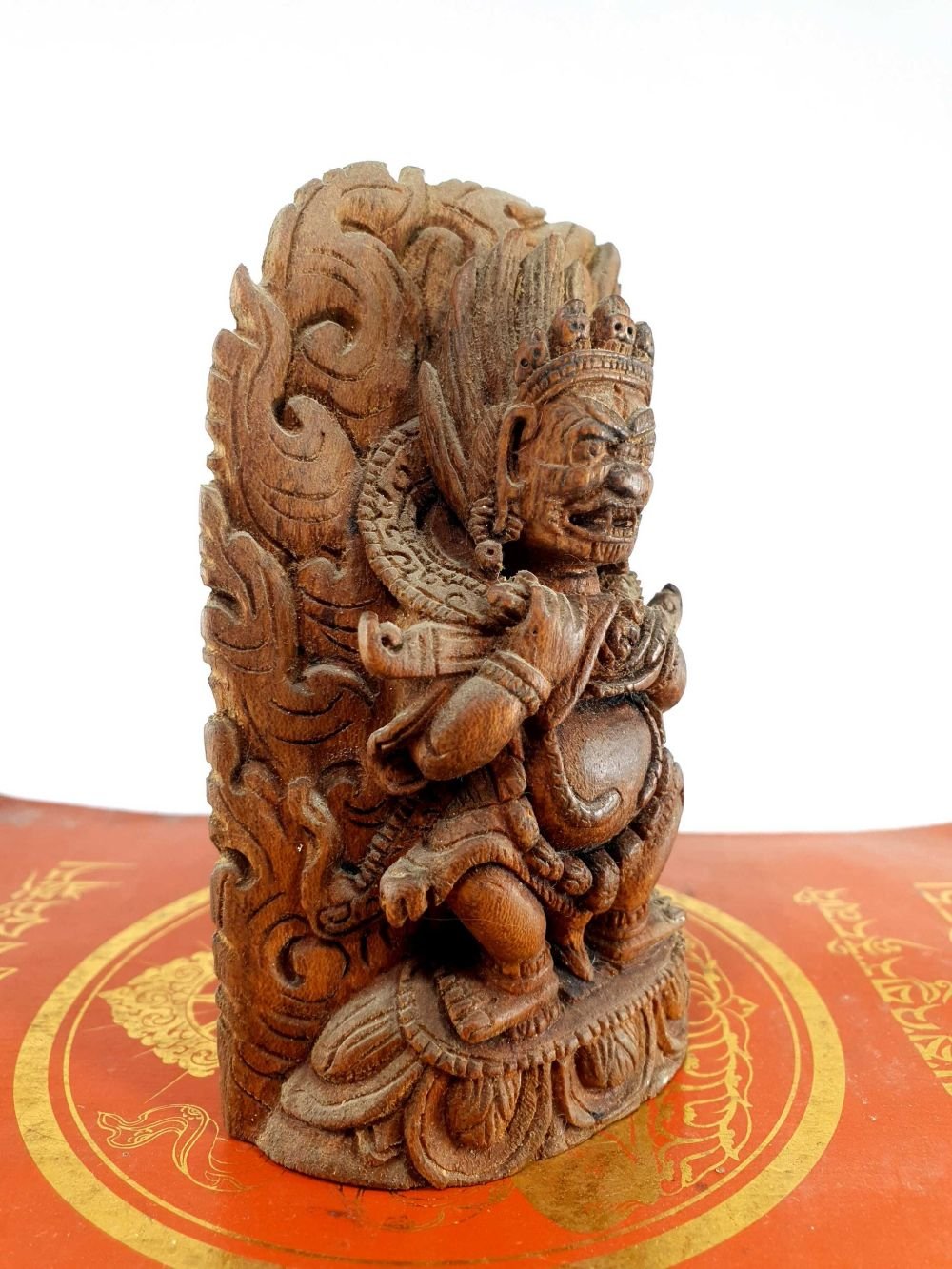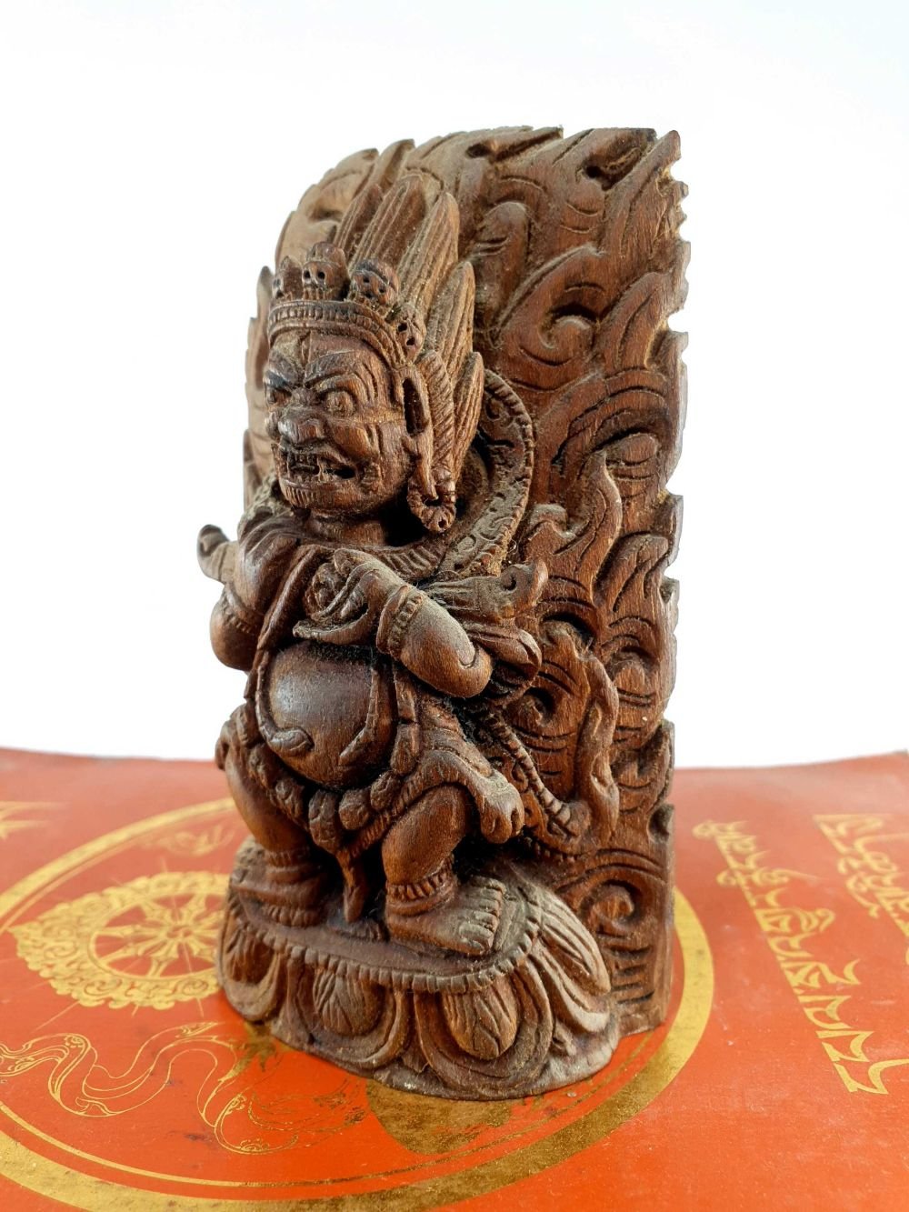 Statue of Mahakala Panjaranatha Two Arms, Wooden Golden Michelia, hand Carved , The Lord of the Tent, fierce protector of sacred spaces and teachings