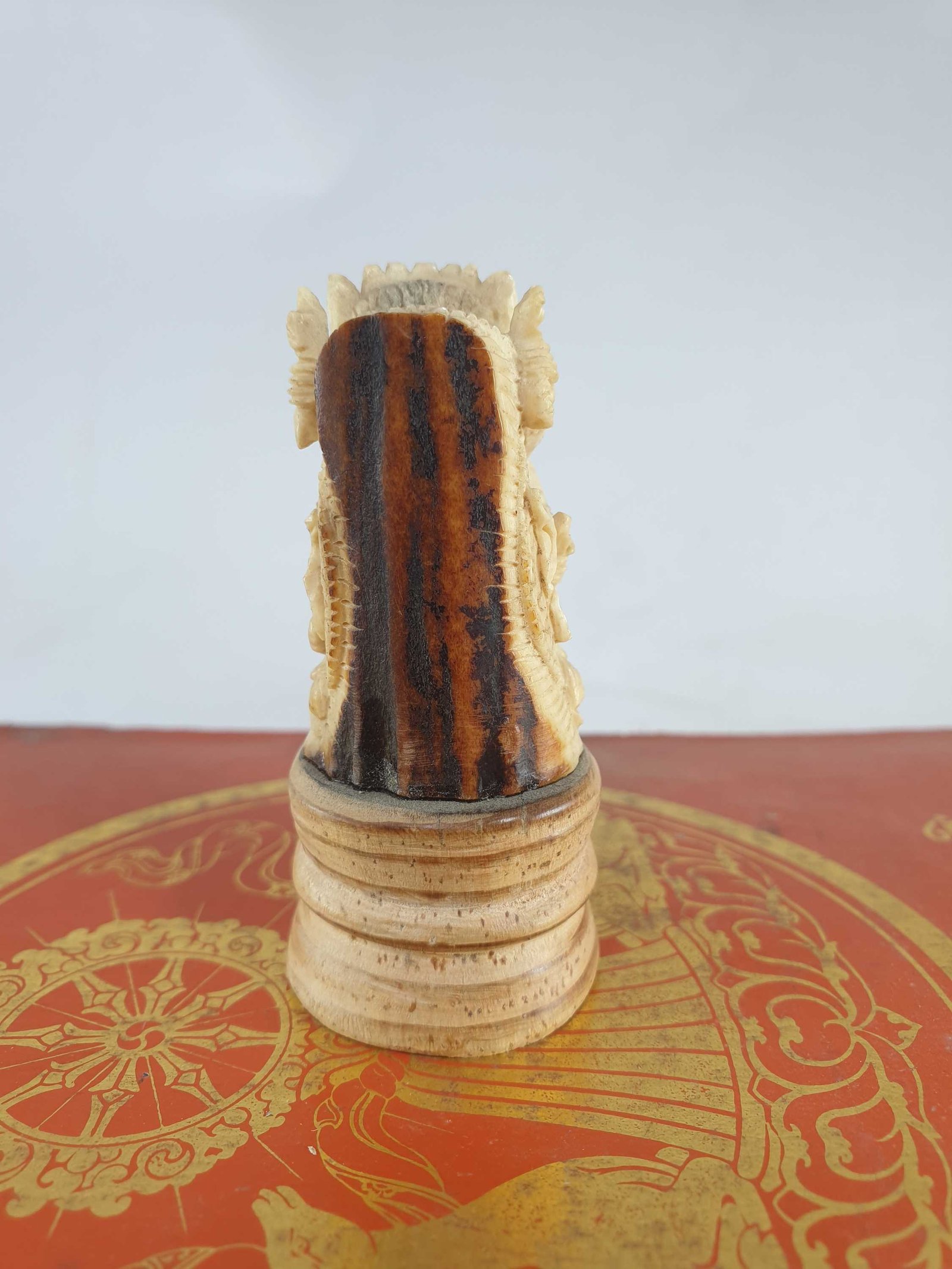 Buddhist Ganesh Carved In Yak Bone, On A Wooden Stand , Remover of Obstacles, God of Wisdom and New Beginnings