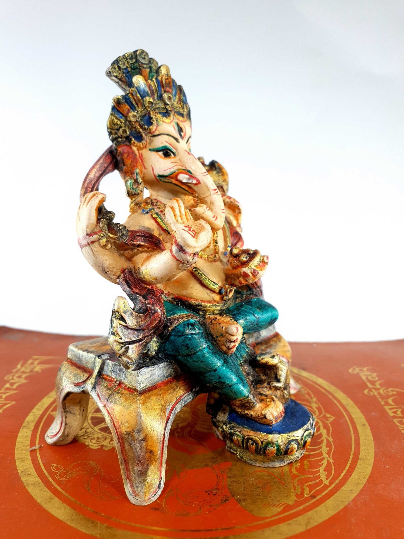 The Ganesh is adorned with traditional colors, creating a captivating aesthetic through a combination of gold and various hues. This painting technique follows a time-honored process that aims to faithfully represent the Ganesh in accordance with traditional color descriptions. In the context of Buddhist statues, this approach holds great significance. Each statue has its own primary color, and it is crucial to depict the statue in its authentic shade. Read More