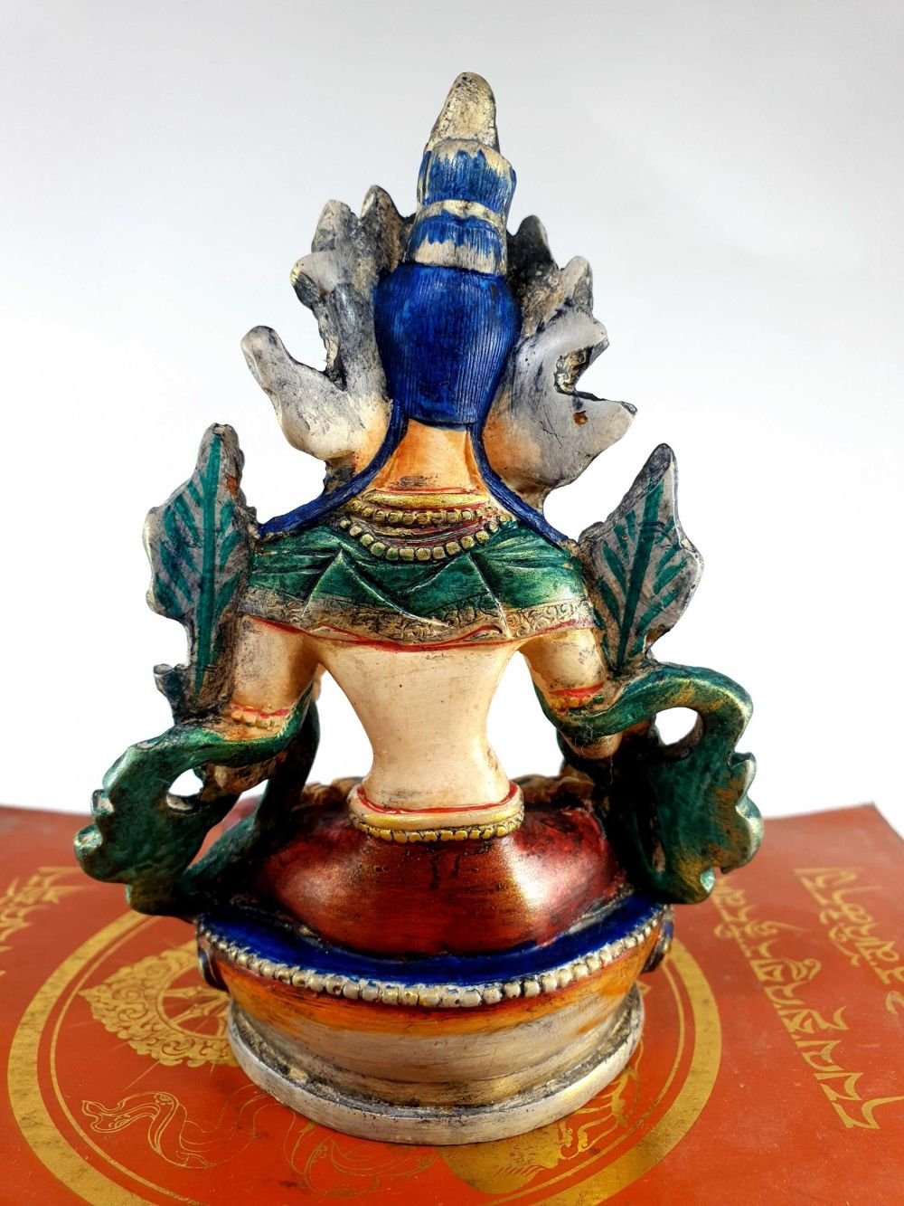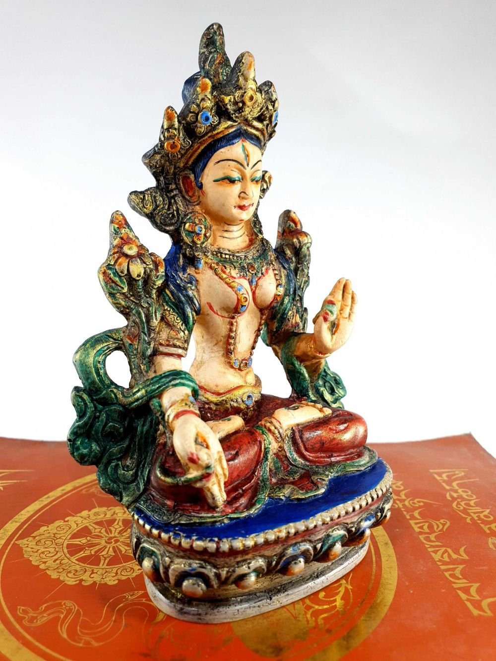 Resin Statue of White Tara Traditional Color Painted, White, Red, Blue , Goddess of longevity, healing, and serene compassion