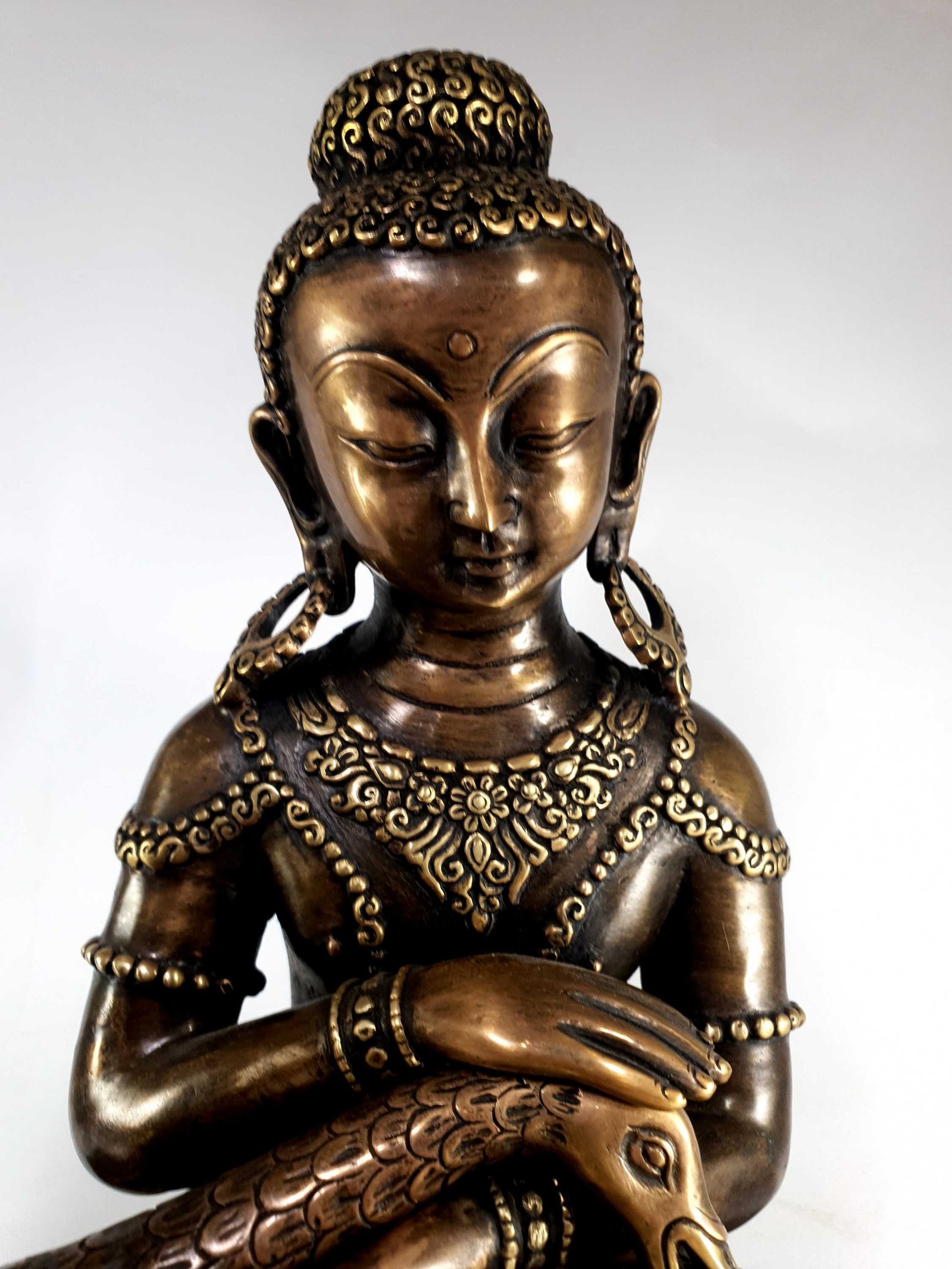 Siddhartha Gautam Buddha with Swan, Antique Finishing, HQ Brass Statue , The Awakened One, Attaining Perfect Wisdom, Compassion, and Enlightenment