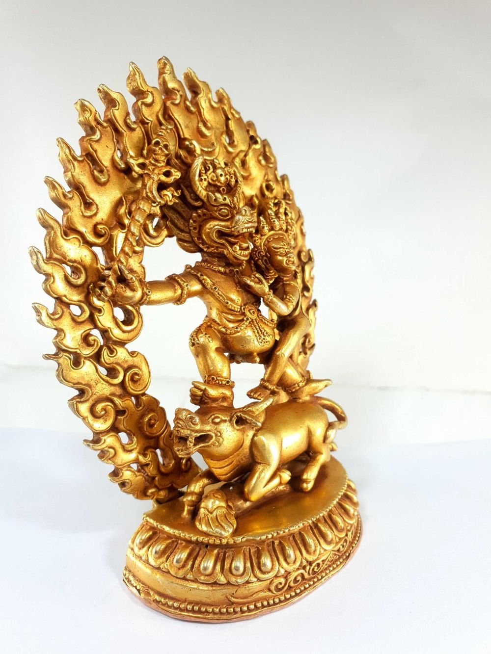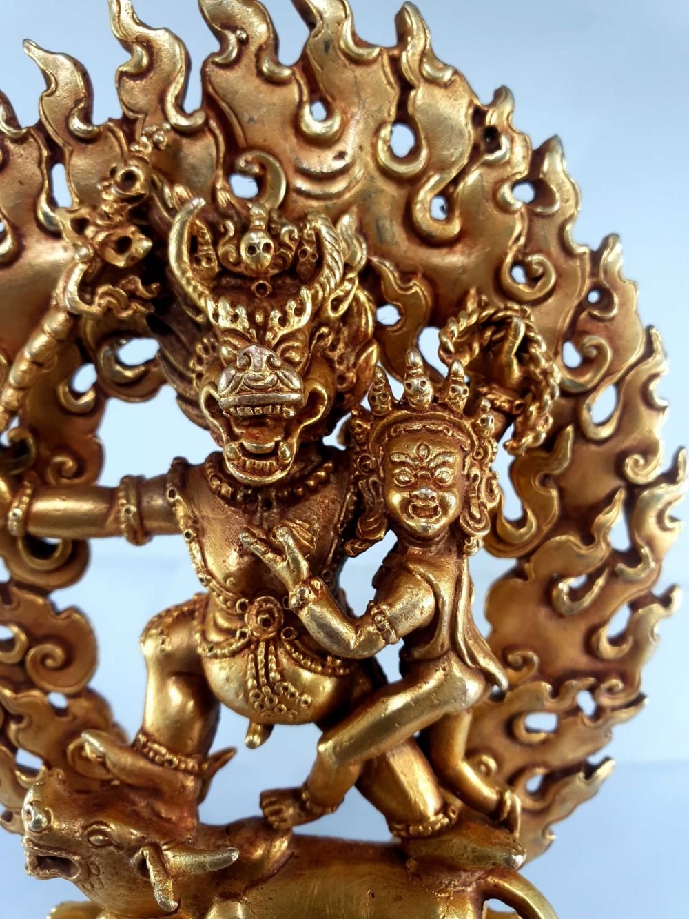 Buddhist Statue of Yamantaka and Consort Shakti, Full Gold Plated, Fine Quality , wrathful destroyer of ignorance