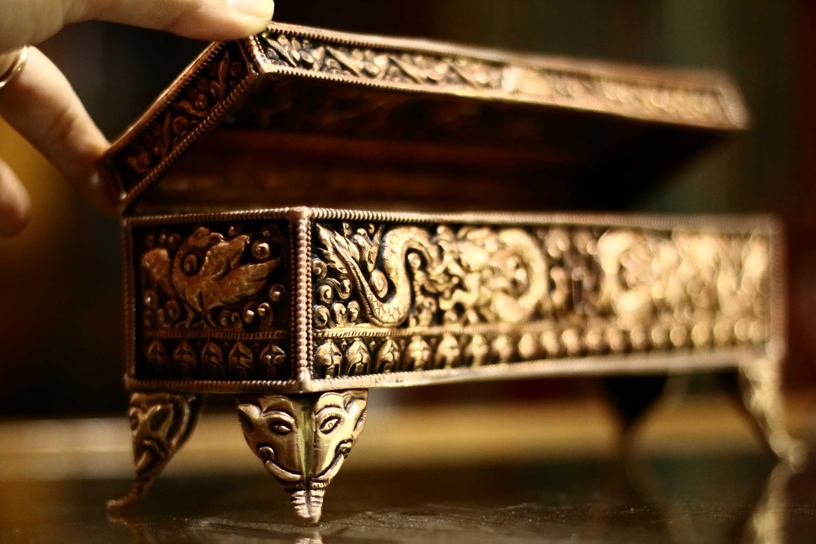 Metal jewelry boxes are considered to be valuable items in Nepali, Buddhist, and Tibetan cultures, and are often passed down from generation to generation as family heirlooms. These boxes are not only functional, but are also considered to be works of art that reflect the rich cultural traditions of the region.