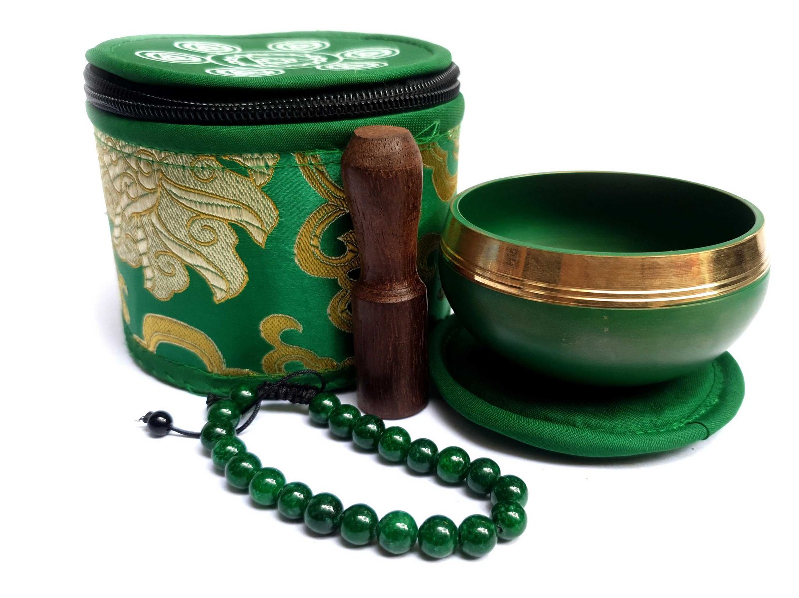 The Jambati Singing Bowl you are purchasing includes a cushion, a wooden playing mallet, and a felt-hitting mallet for playing the bowl. If you require additional accessories, you can browse the options above and purchase them separately. Should you have any further questions or need assistance, please don't hesitate to let us know. Read More