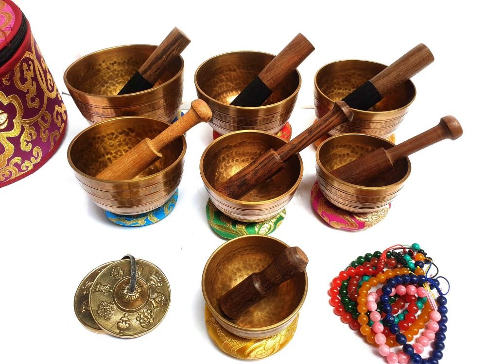 Seven Chakra Singing Set with Cover and with Gift Package Worth $20, One Tingsha and 7 Chakra Stone Bracelet, Hand Hammered, Select Accessories |