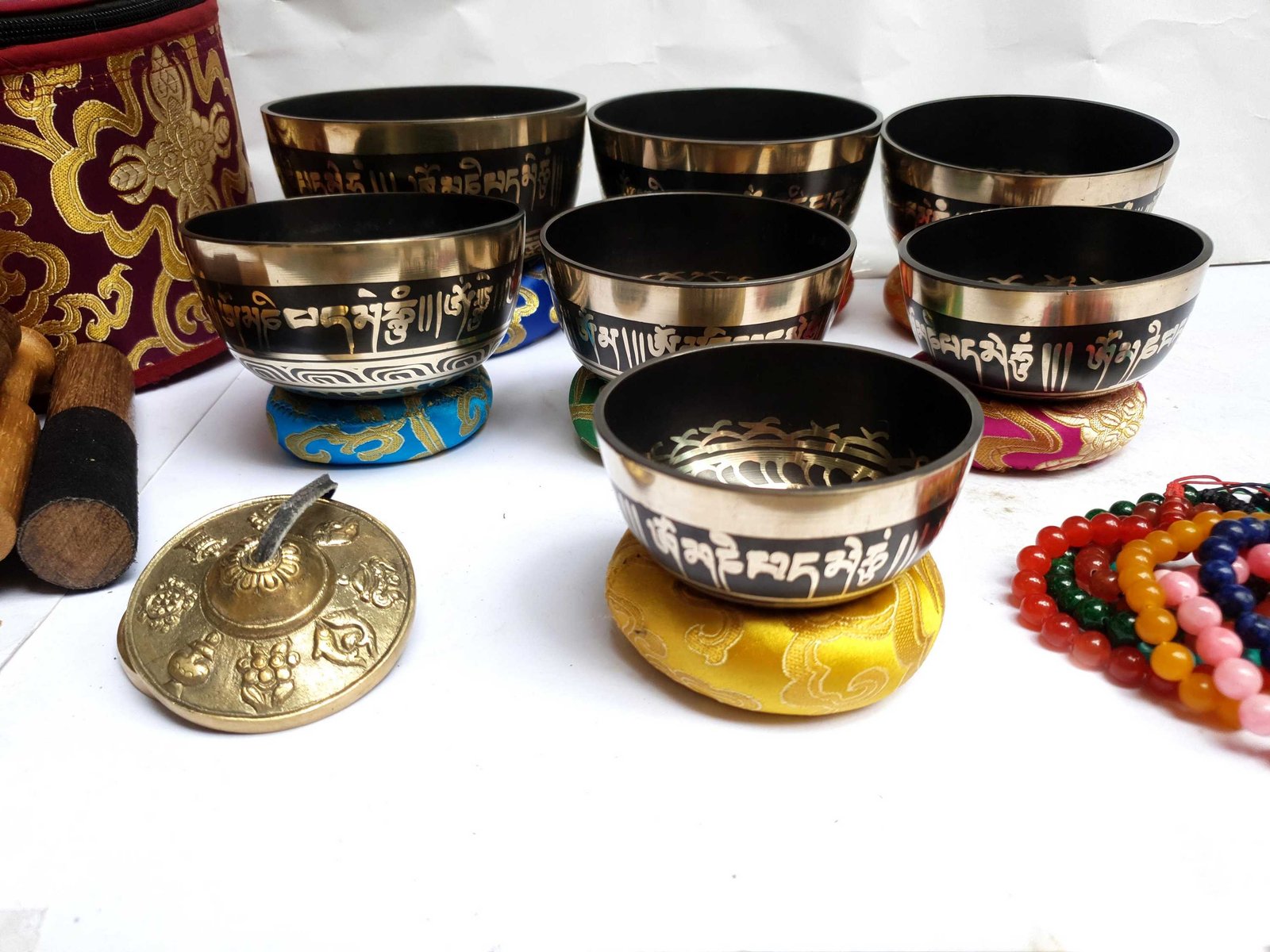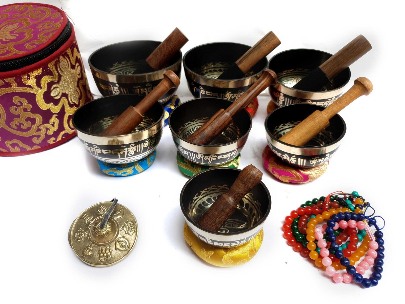 Seven Chakra Singing Set with Cover and with Gift Package Worth $20, One Tingsha and 7 Chakra Stone Bracelet, Buddha Eye Etching, Select Accessories |