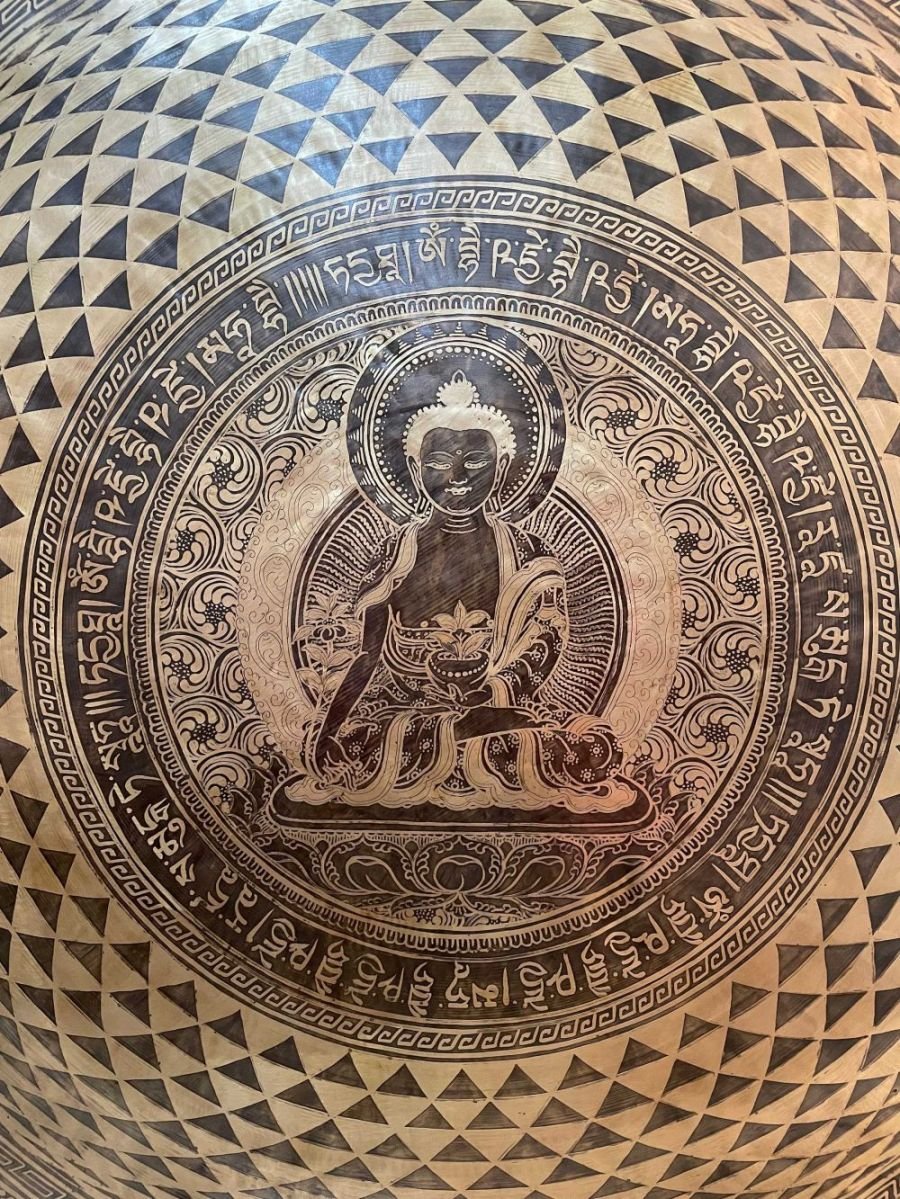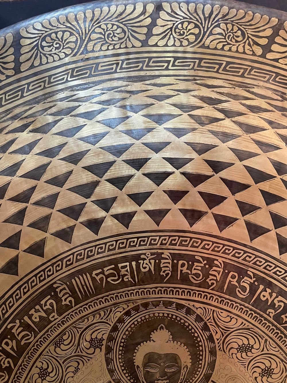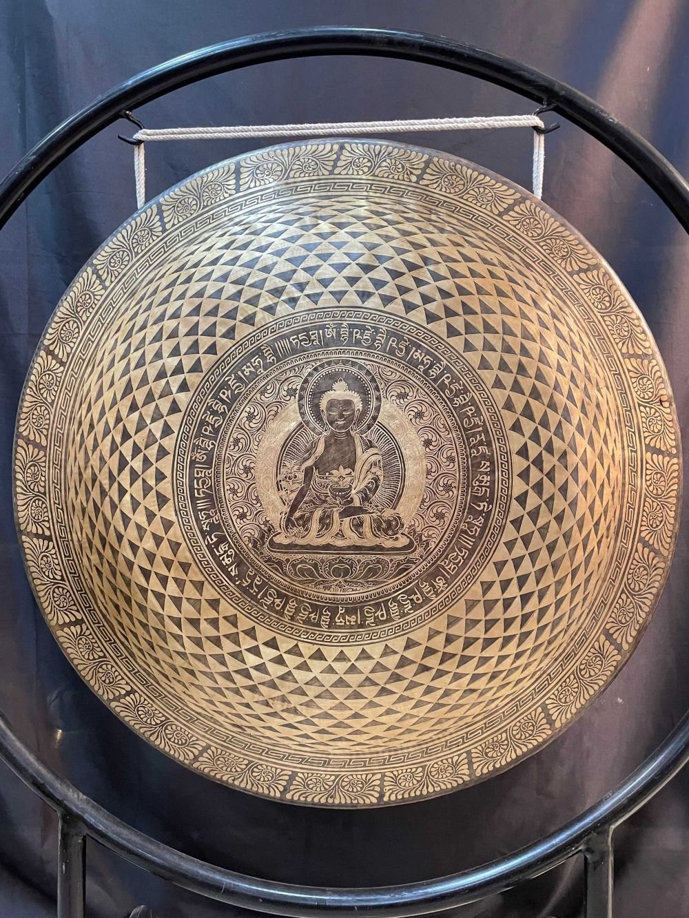 bronze gongs have a rich history in Buddhist and Nepali culture, and are revered for their powerful and resonant sound. They are often used in sound healing practices such as gong sound baths and can promote relaxation, reduce stress, and bring about a sense of inner peace. If you are interested in playing the gong, be sure to use a soft-headed mallet and experiment with different striking techniques to find the sound that works best for you.
