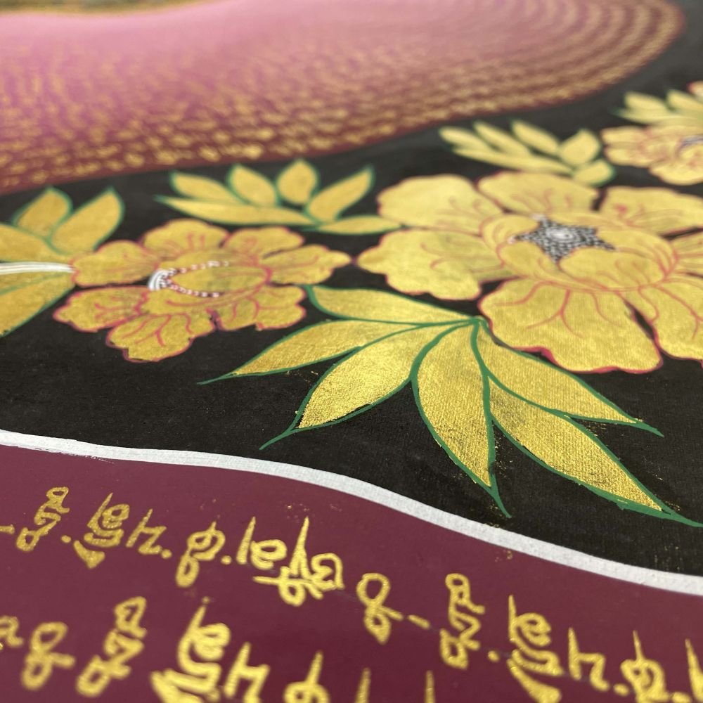 A thangka, also known as tangka, thanka, or tanka, is a vibrant and intricate Tibetan Buddhist painting that serves as a visual representation of spiritual teachings. Crafted with meticulous detail on cotton or silk appliqué, thangkas depict a wide range of subjects including Buddhist deities, sacred scenes, mandalas, and narrative stories. These sacred artworks are traditionally kept unframed and rolled up for storage, resembling ancient scrolls. To protect their delicate nature, thangkas are mounted on textile backings and often adorned with a silk cover on the front. Proper preservation in dry environments is crucial to maintain the integrity and longevity of the silk. Read More