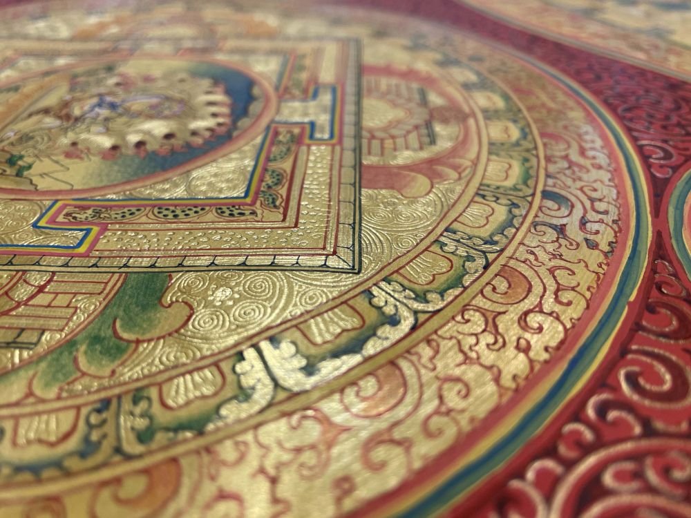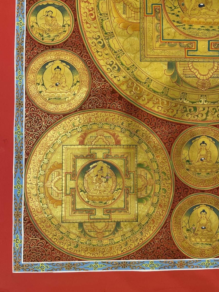 Buddhist Handmade Thangka of Mandala Thangka, Red, Blue and Gold, Lama`s Art |