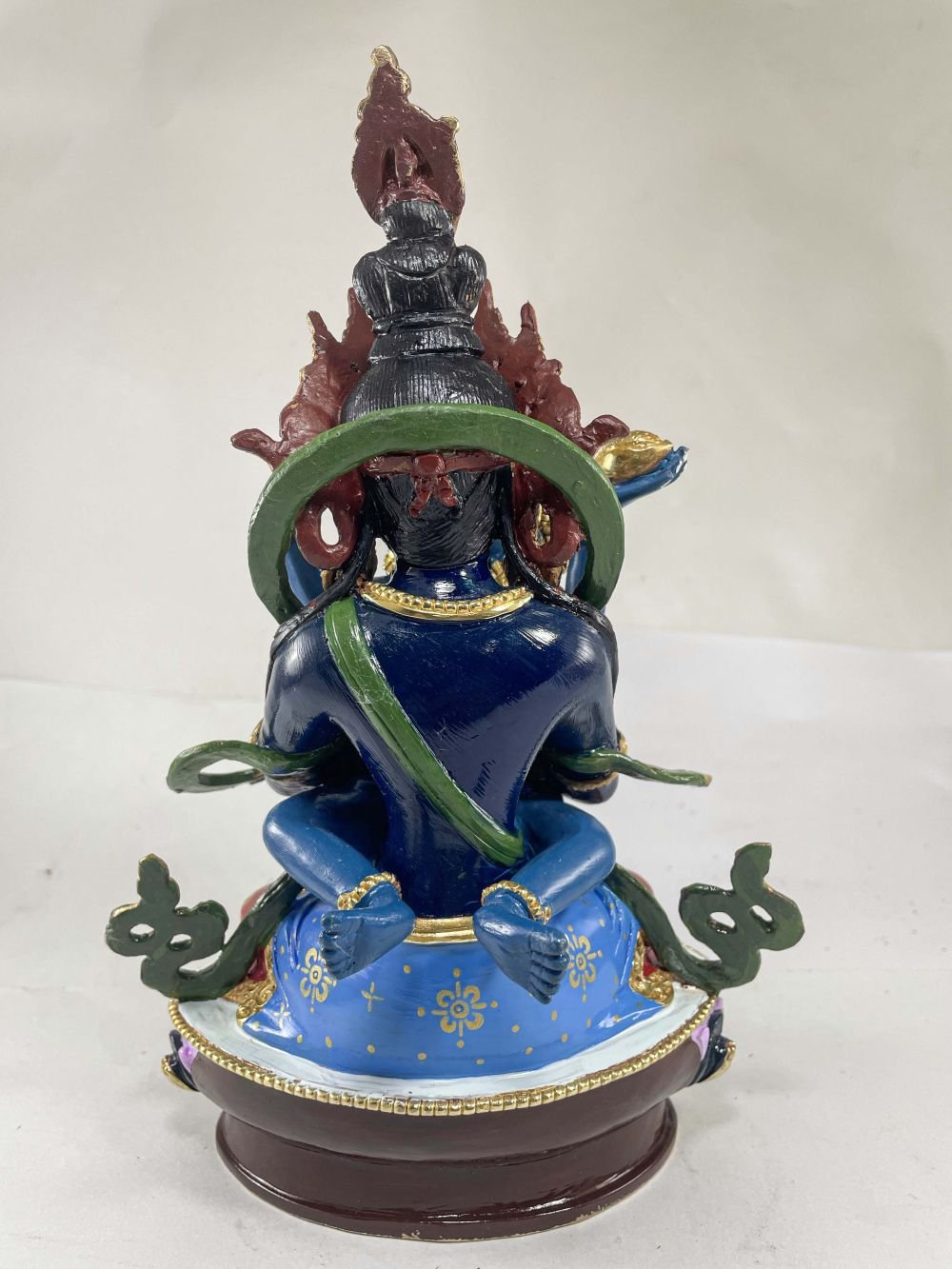 The Vajradhara is adorned with traditional colors, creating a captivating aesthetic through a combination of gold and various hues. This painting technique follows a time-honored process that aims to faithfully represent the Vajradhara in accordance with traditional color descriptions. In the context of Buddhist statues, this approach holds great significance. Each statue has its own primary color, and it is crucial to depict the statue in its authentic shade. Read More