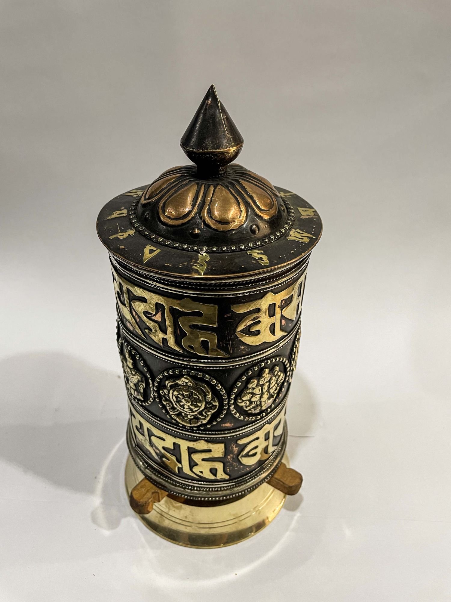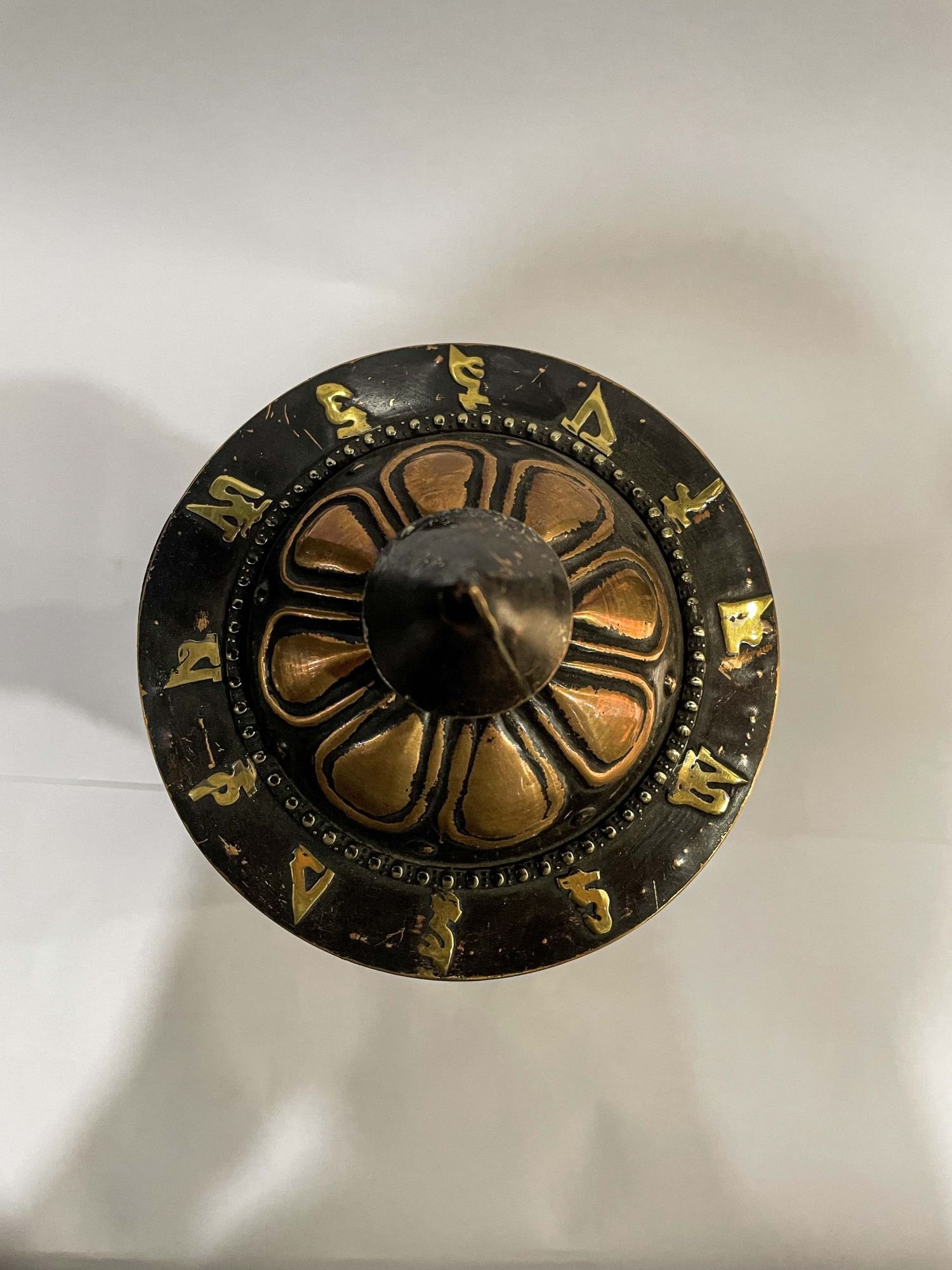 Table Prayer Wheel with Mantra Inside, Black Color , A wheel containing mantras, used to accumulate merit and spread blessings