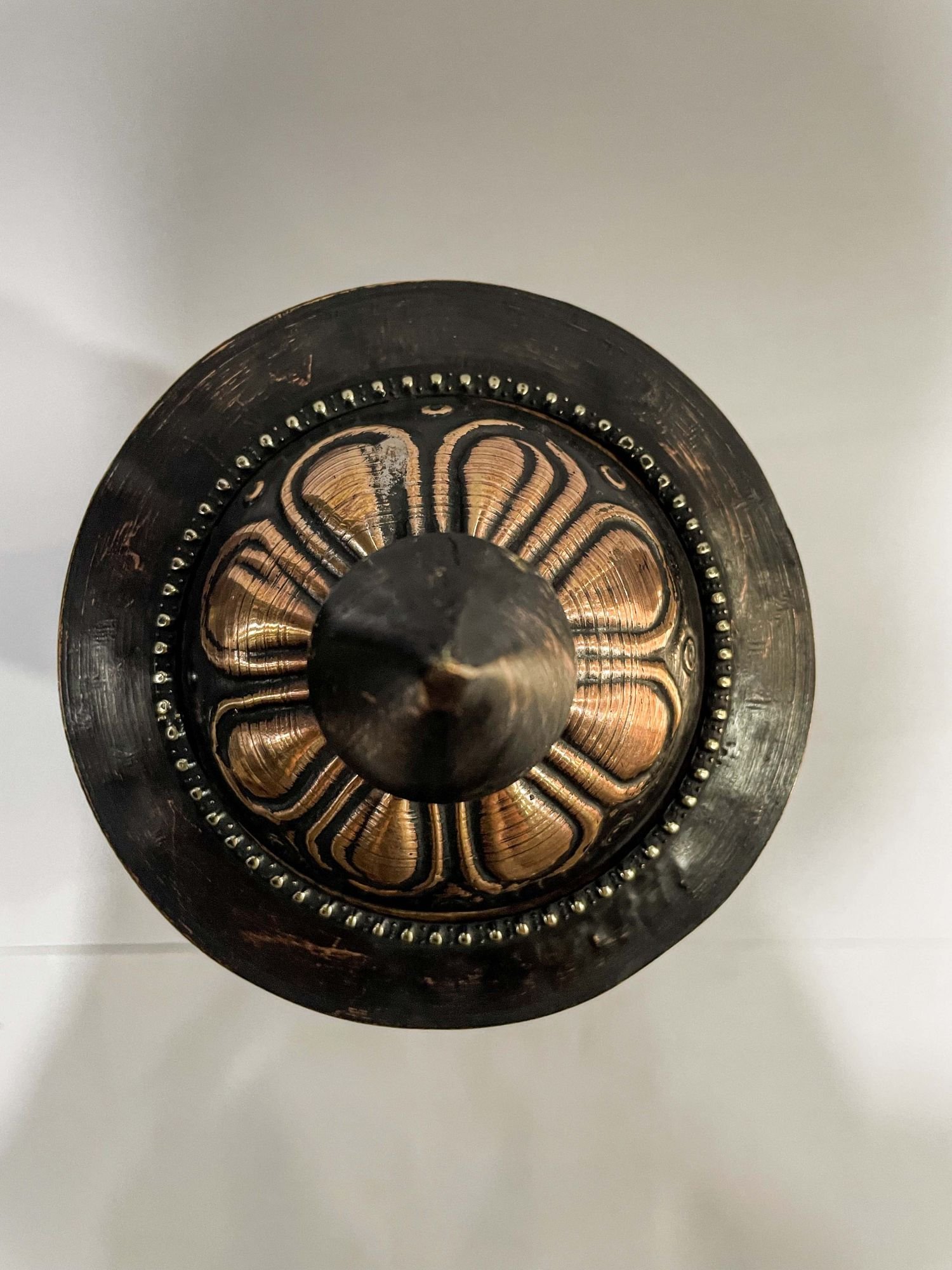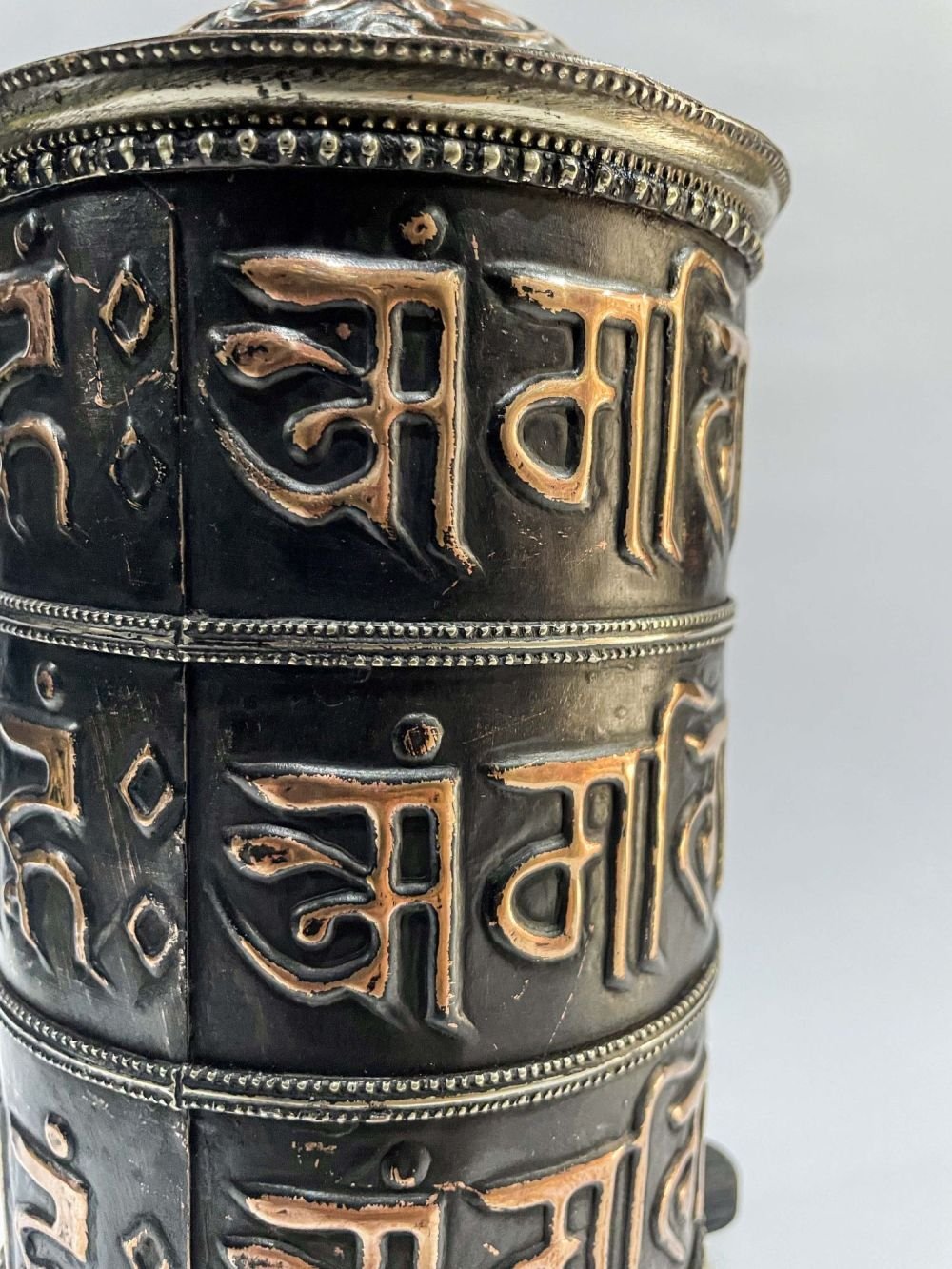 Table Prayer Wheel Big Size with Mantra Inside, Oxidized with Carved Mantra , A wheel containing mantras, used to accumulate merit and spread blessings