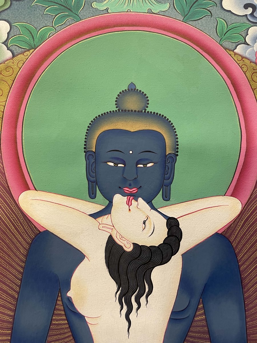 Master Quality, Buddhist Thangka of Samantabhadra, Original , Bodhisattva of universal virtue, embodying practice and compassion