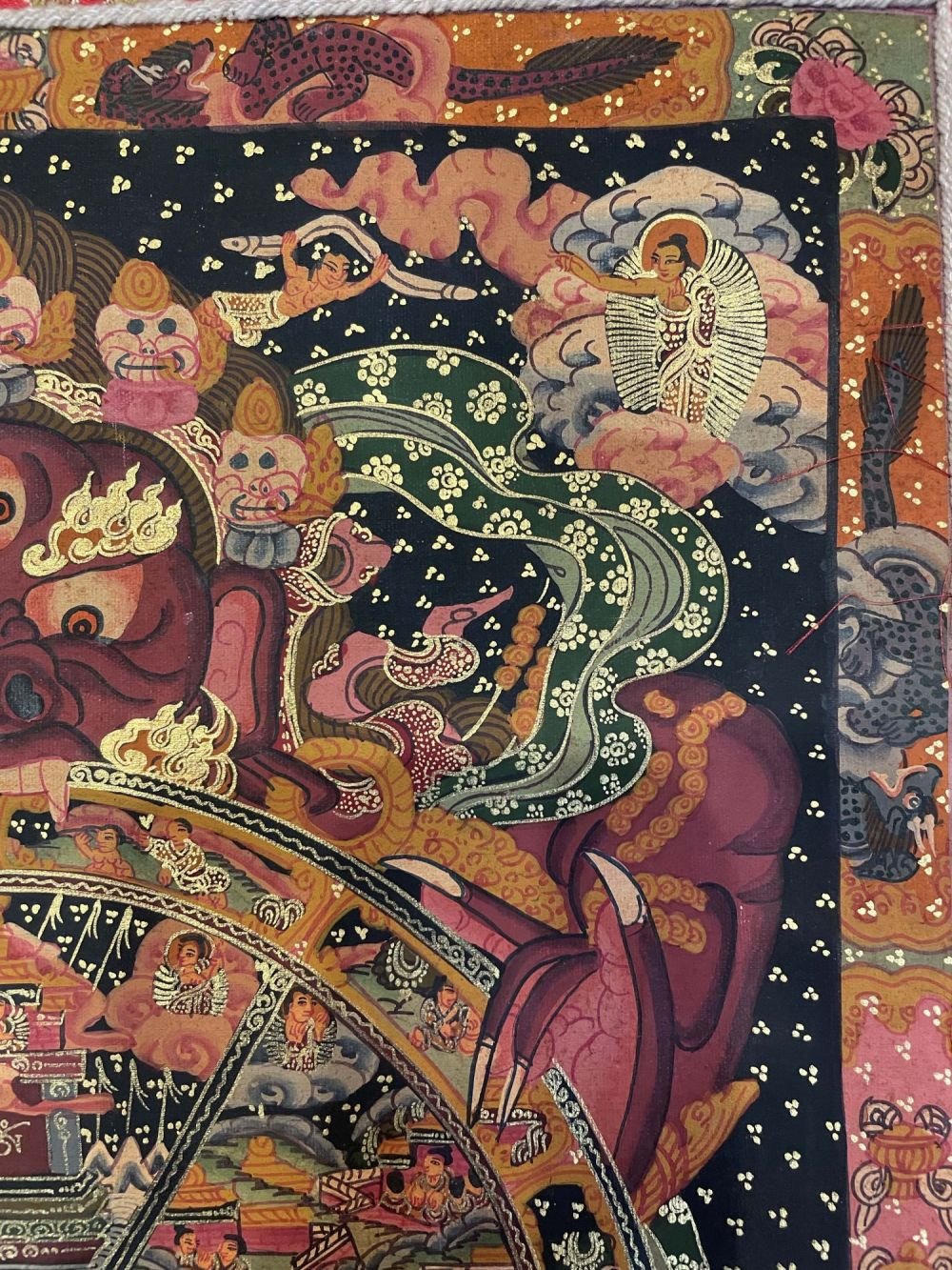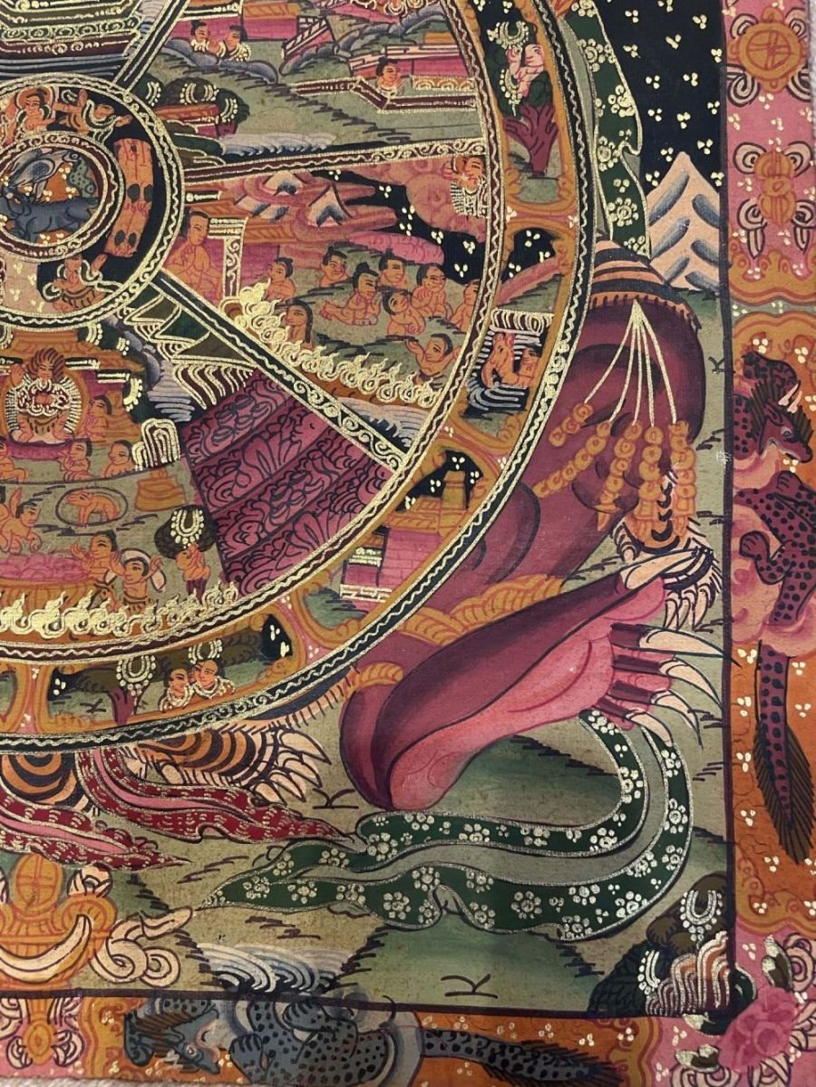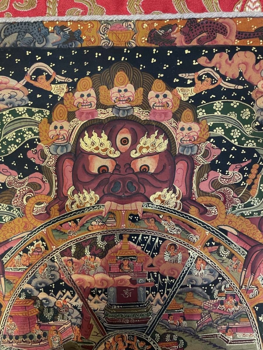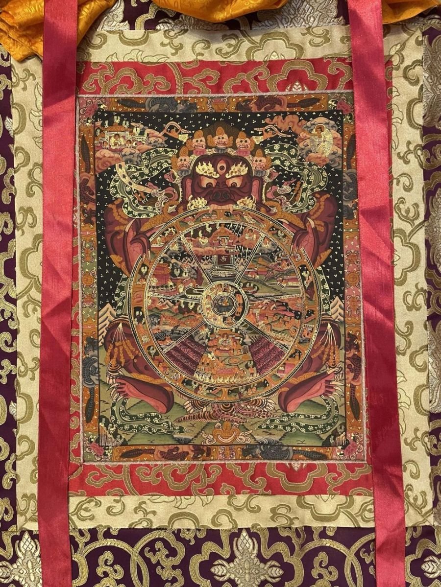Buddhist Thangka of Wheel of Life Thangka, with Brocade, Lama`s Art