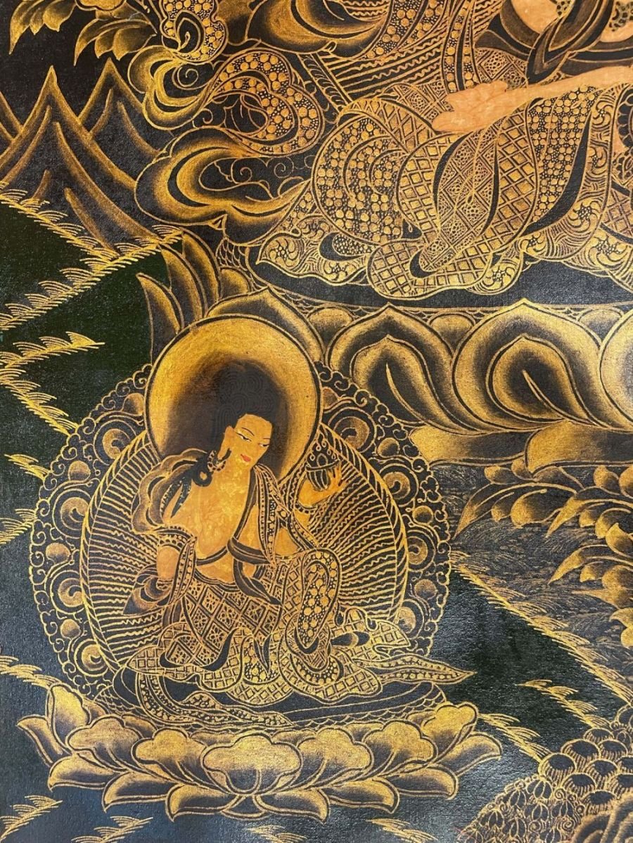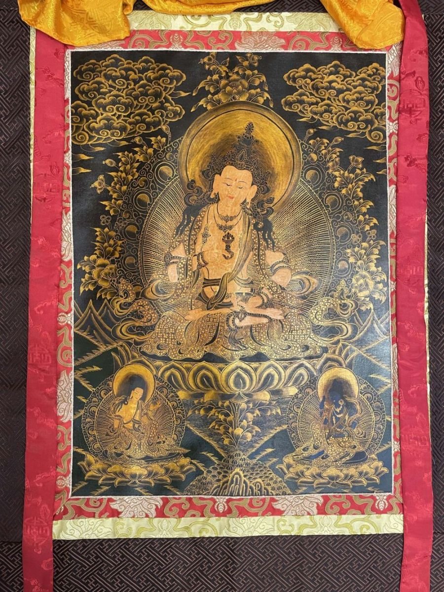 A thangka, also known as tangka, thanka, or tanka, is a vibrant and intricate Tibetan Buddhist painting that serves as a visual representation of spiritual teachings. Crafted with meticulous detail on cotton or silk appliqué, thangkas depict a wide range of subjects including Buddhist deities, sacred scenes, mandalas, and narrative stories. These sacred artworks are traditionally kept unframed and rolled up for storage, resembling ancient scrolls. To protect their delicate nature, thangkas are mounted on textile backings and often adorned with a silk cover on the front. Proper preservation in dry environments is crucial to maintain the integrity and longevity of the silk. Read More