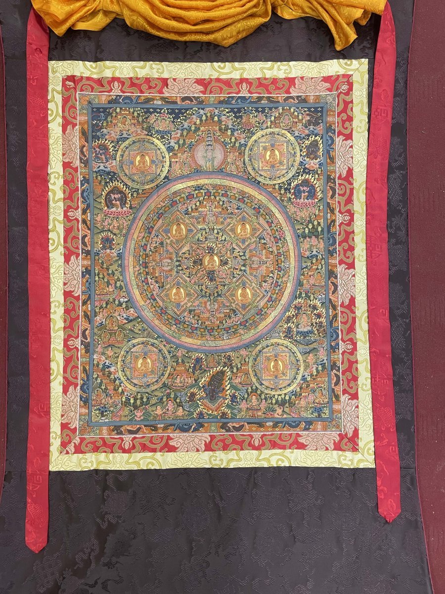 Buddhist Thangka of Five Mandala Thangka, with Brocade, Lama`s Art |
