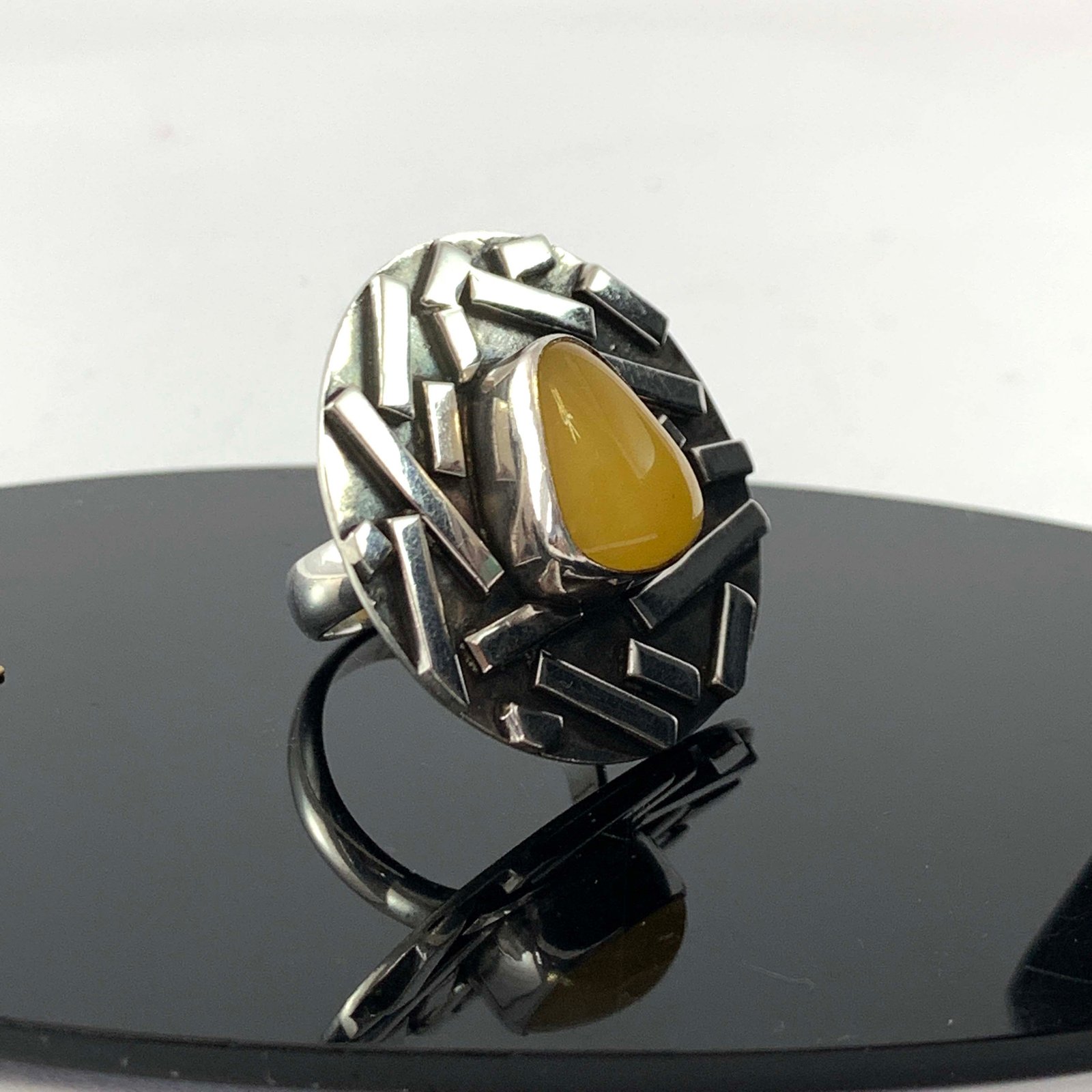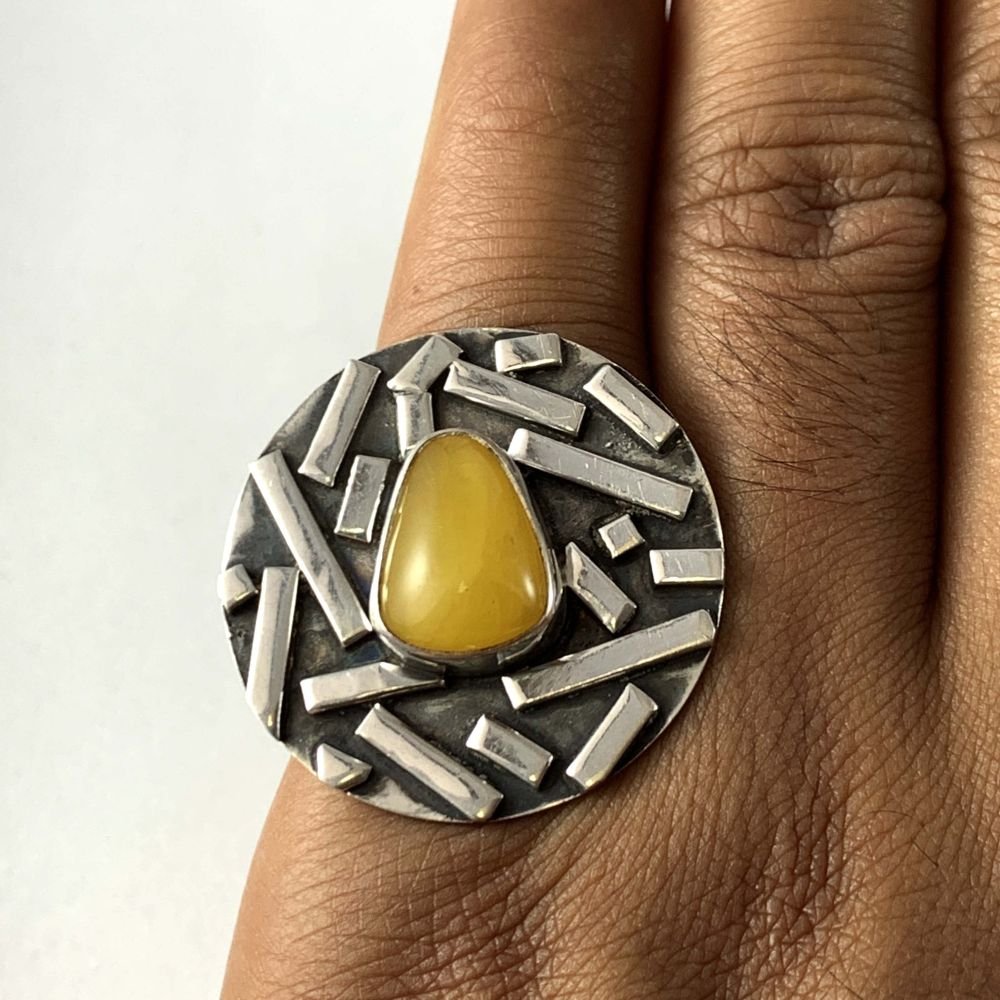 Designer Silver Jewellery with Amber Circle Plate Stone Rings |