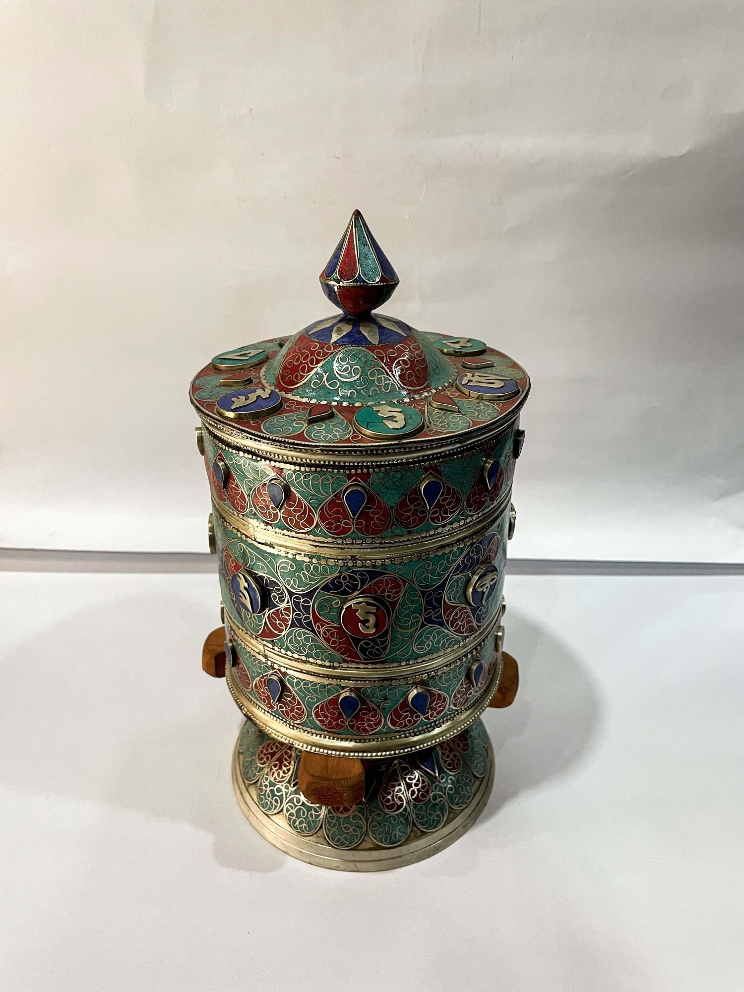 Table Prayer Wheel Big Size with Mantra Inside, Stone Setting with Embossed Mantra , A wheel containing mantras, used to accumulate merit and spread blessings