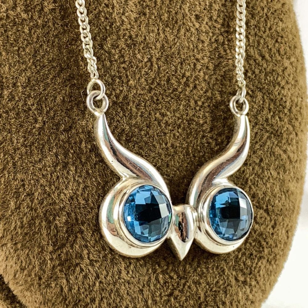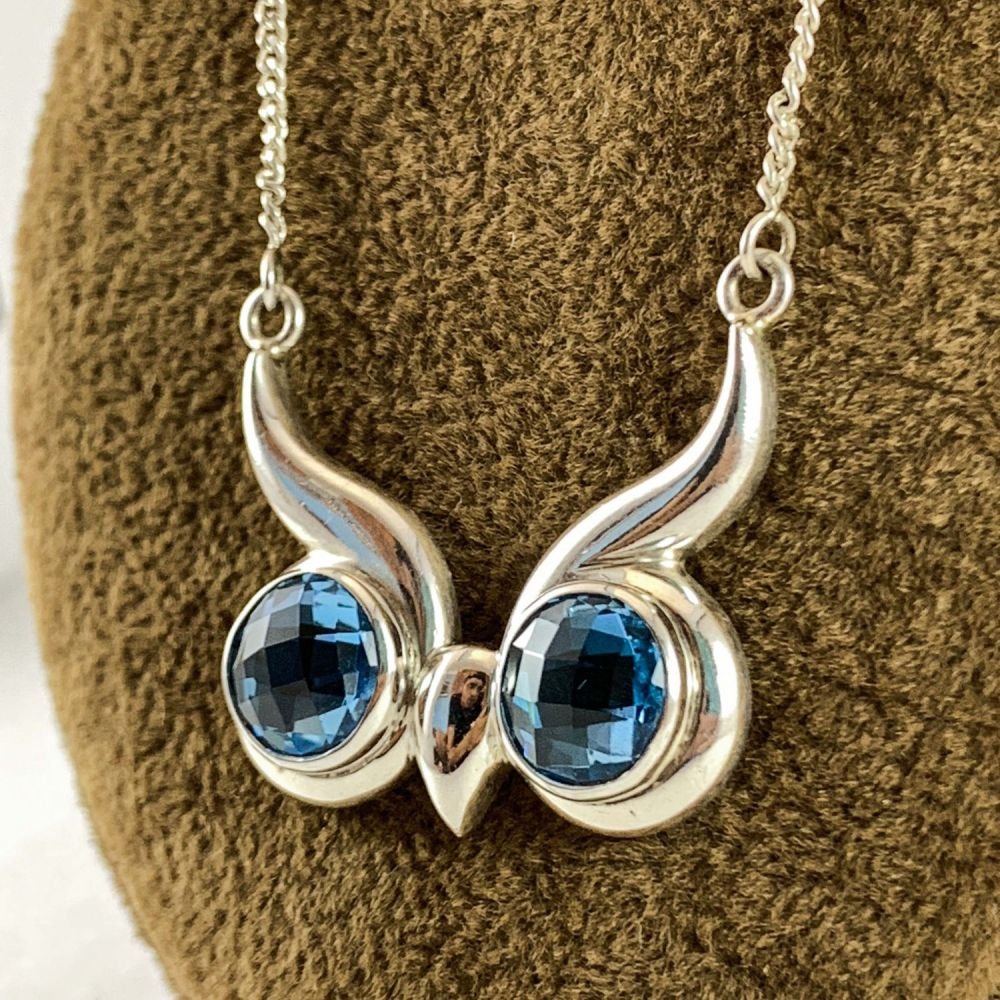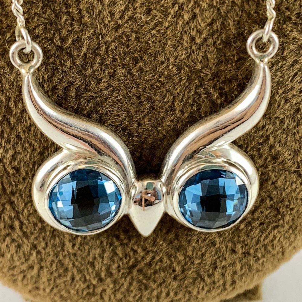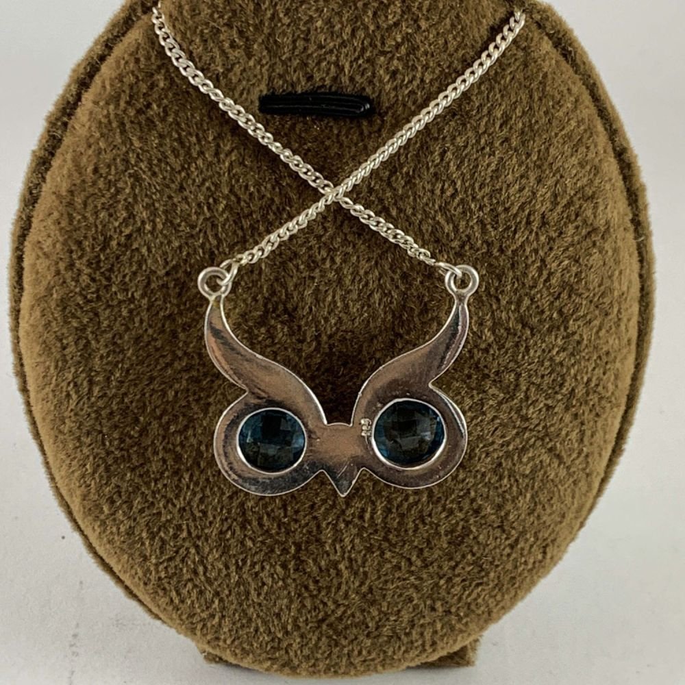 Designer Silver Blue Topaz Owl Head Pendants |