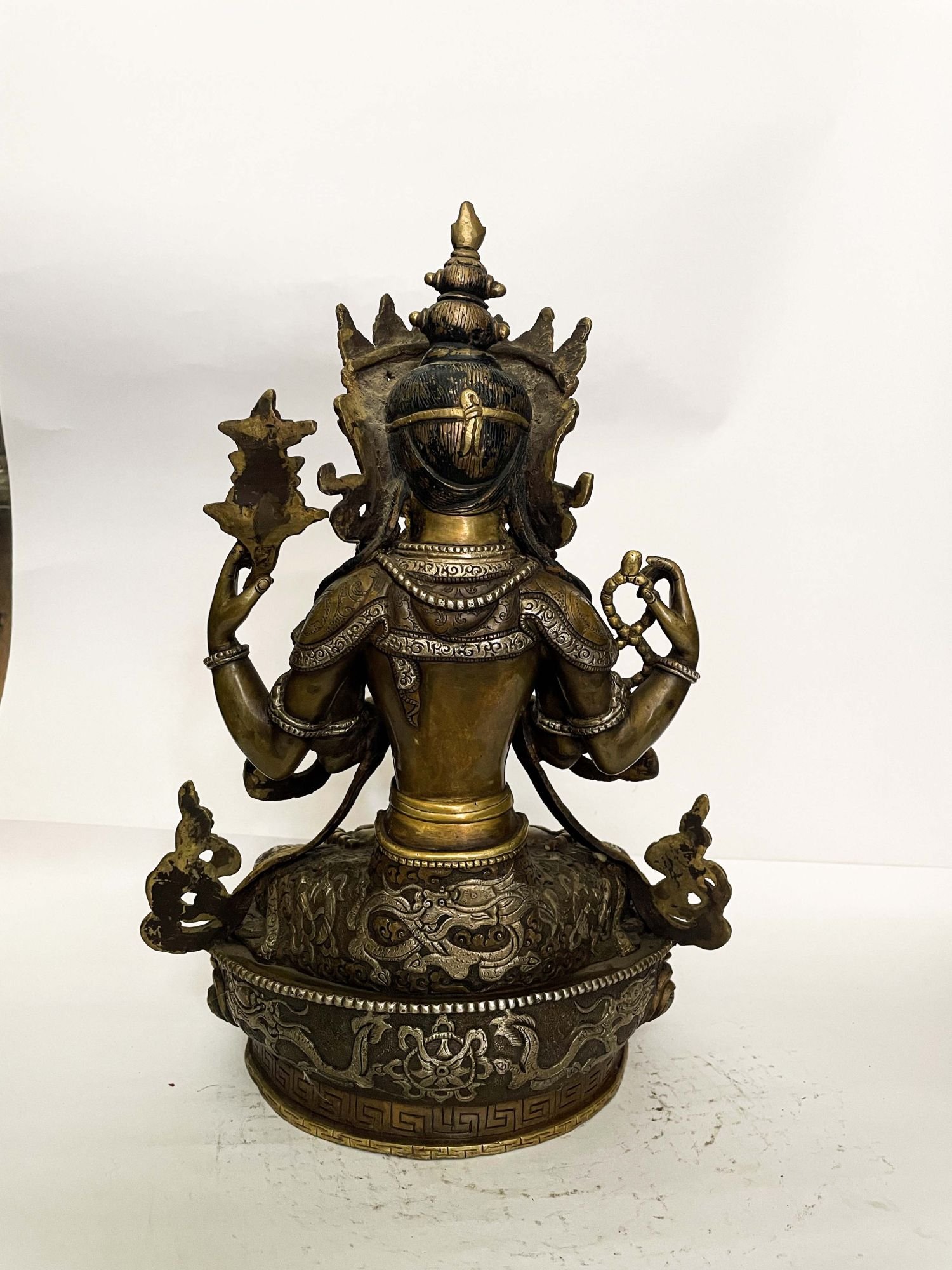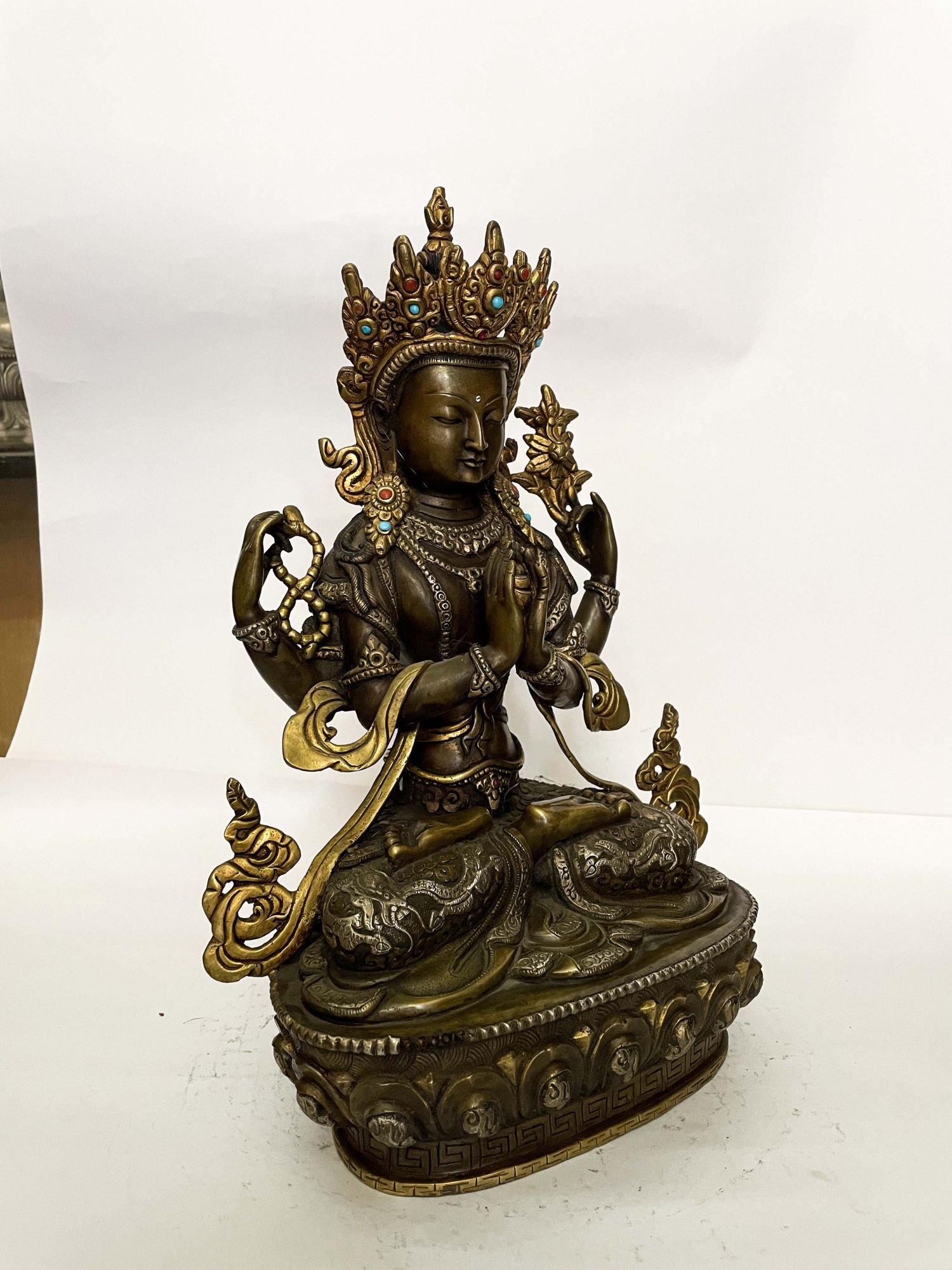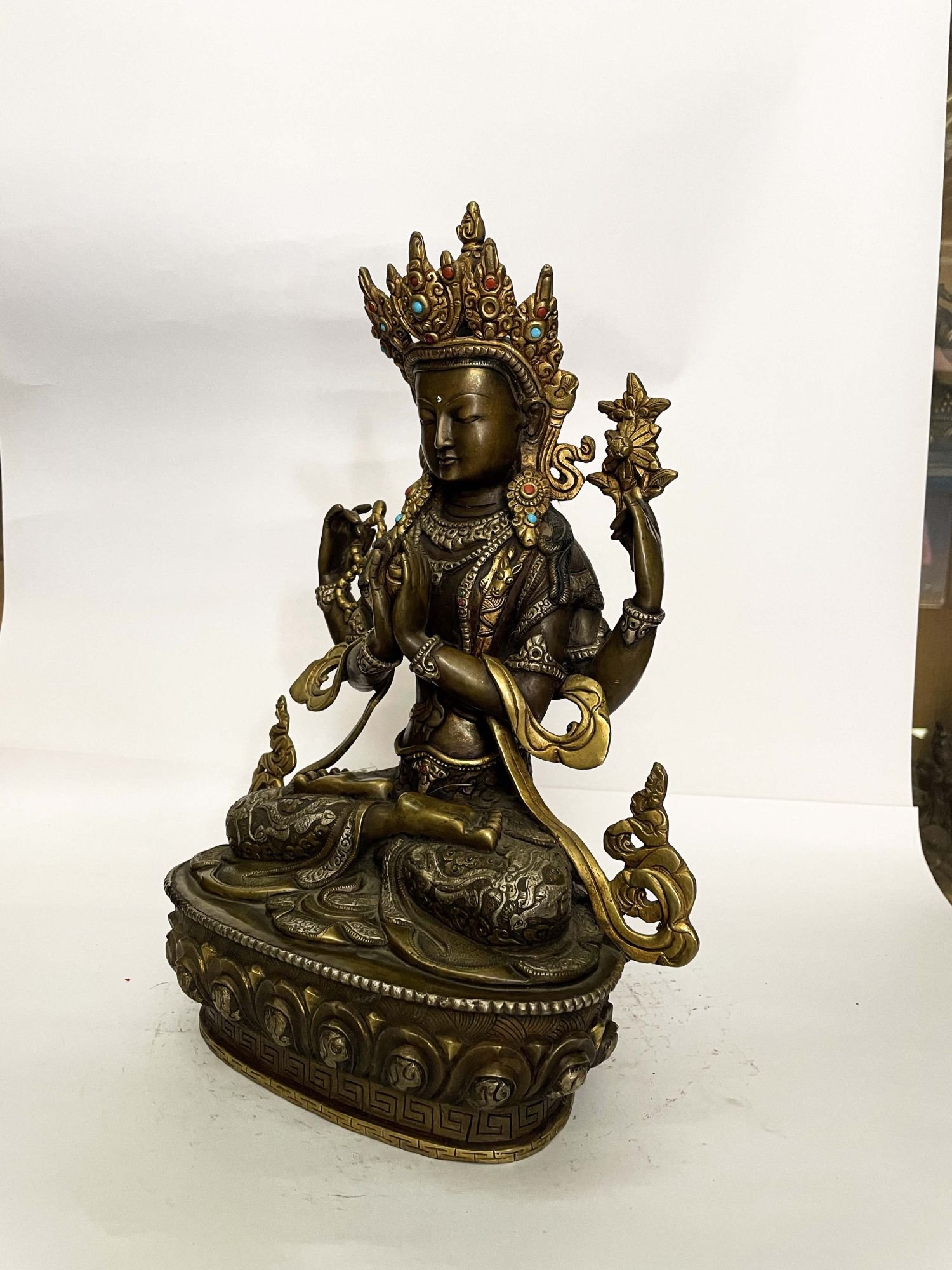 Buddhist Statue of Chenrezig, Stone Setting, Partly Gold Plated, Chocolate Oxidized , Bodhisattva of Compassion, Protector of All Beings