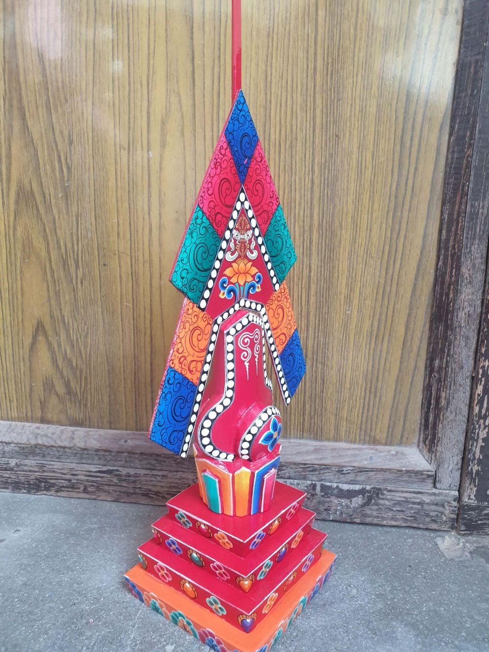 Buddhist offering Item of 100 Gods Wooden Painted Torma |