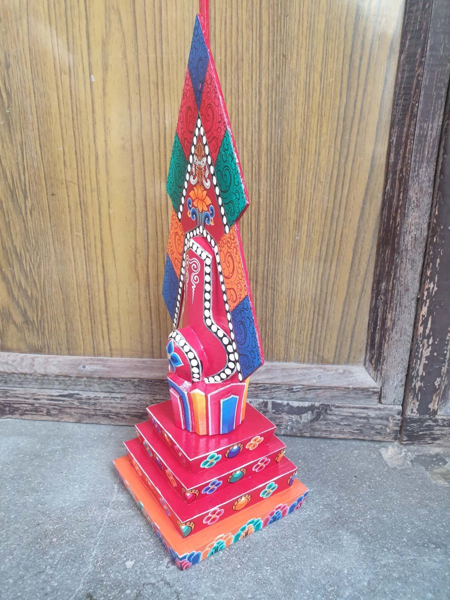 The Torma is adorned with traditional colors, creating a captivating aesthetic through a combination of gold and various hues. This painting technique follows a time-honored process that aims to faithfully represent the Torma in accordance with traditional color descriptions. In the context of Buddhist statues, this approach holds great significance. Each statue has its own primary color, and it is crucial to depict the statue in its authentic shade. Read More