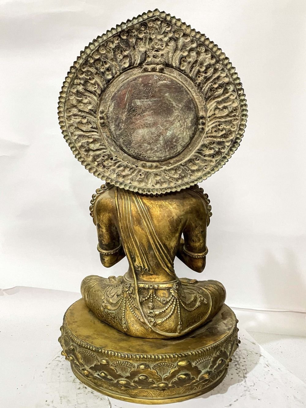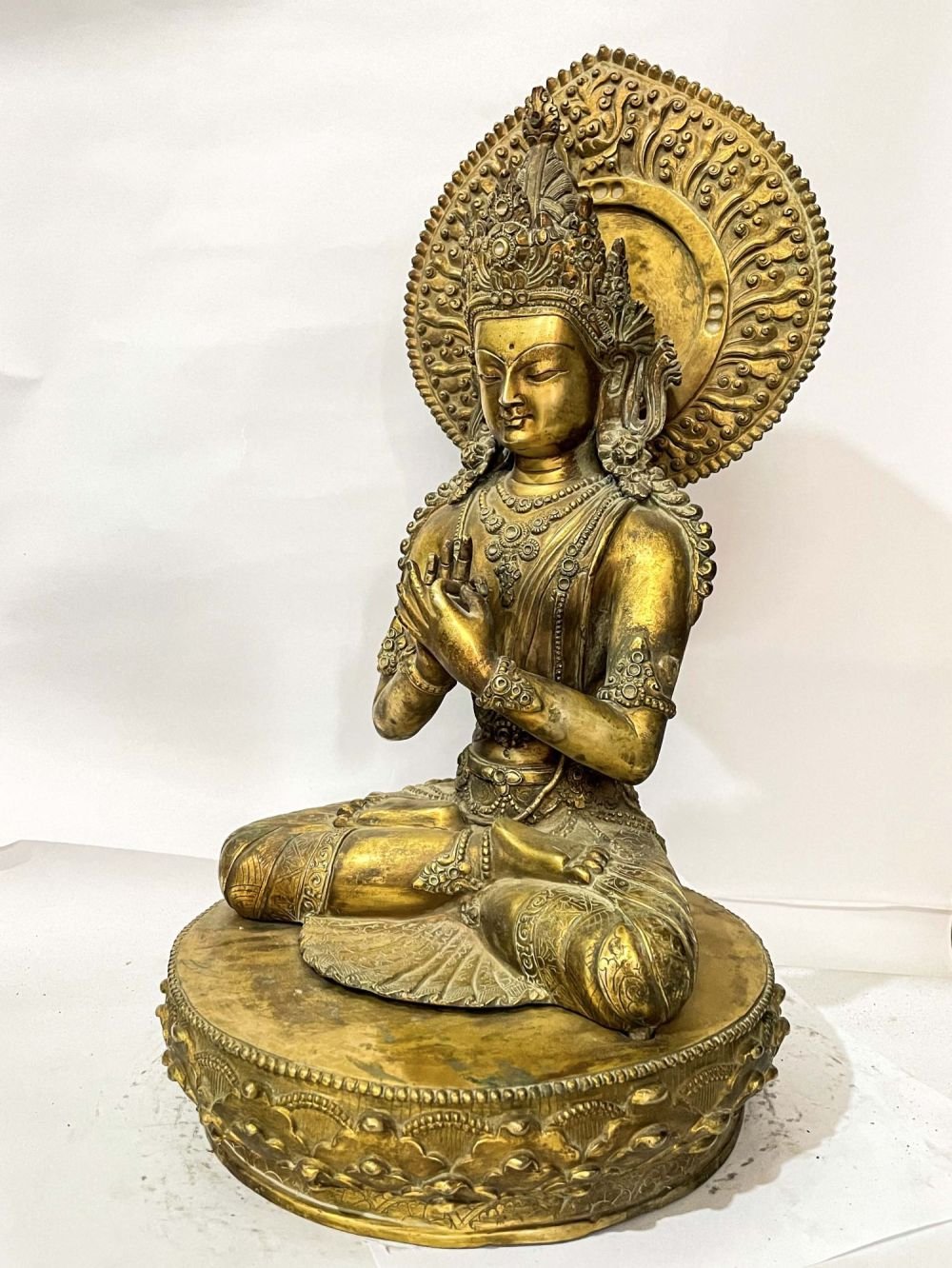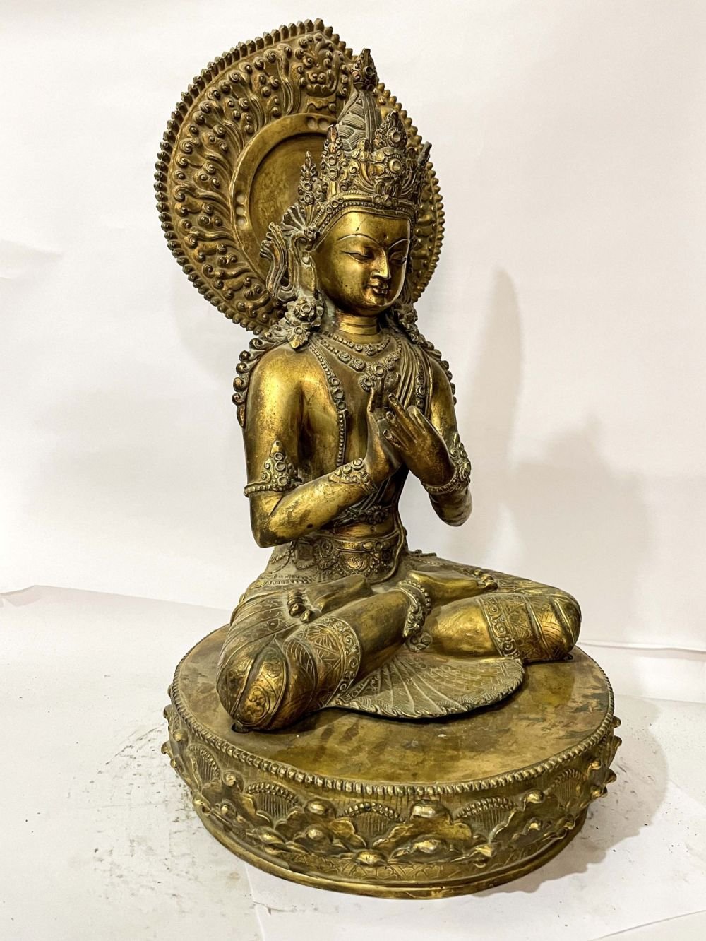 This Maitreya Buddha is finished with full gold plating. also known as mercury gold plating or fire gold plating. This traditional technique involves the application of a genuine layer of gold onto the Maitreya Buddha. Referred to as mercury gold plating, it is considered the correct and authentic form of gold plating in Nepal. Despite being more expensive than electroplating, this traditional mercury gold plating is gaining popularity again in Nepal. People are drawn to its authenticity, longevity, and the unmatched beauty it brings to the Maitreya Buddha. The resurgence of interest in this traditional form of gold plating reflects a growing appreciation for the craftsmanship and cultural heritage of Nepal Read More