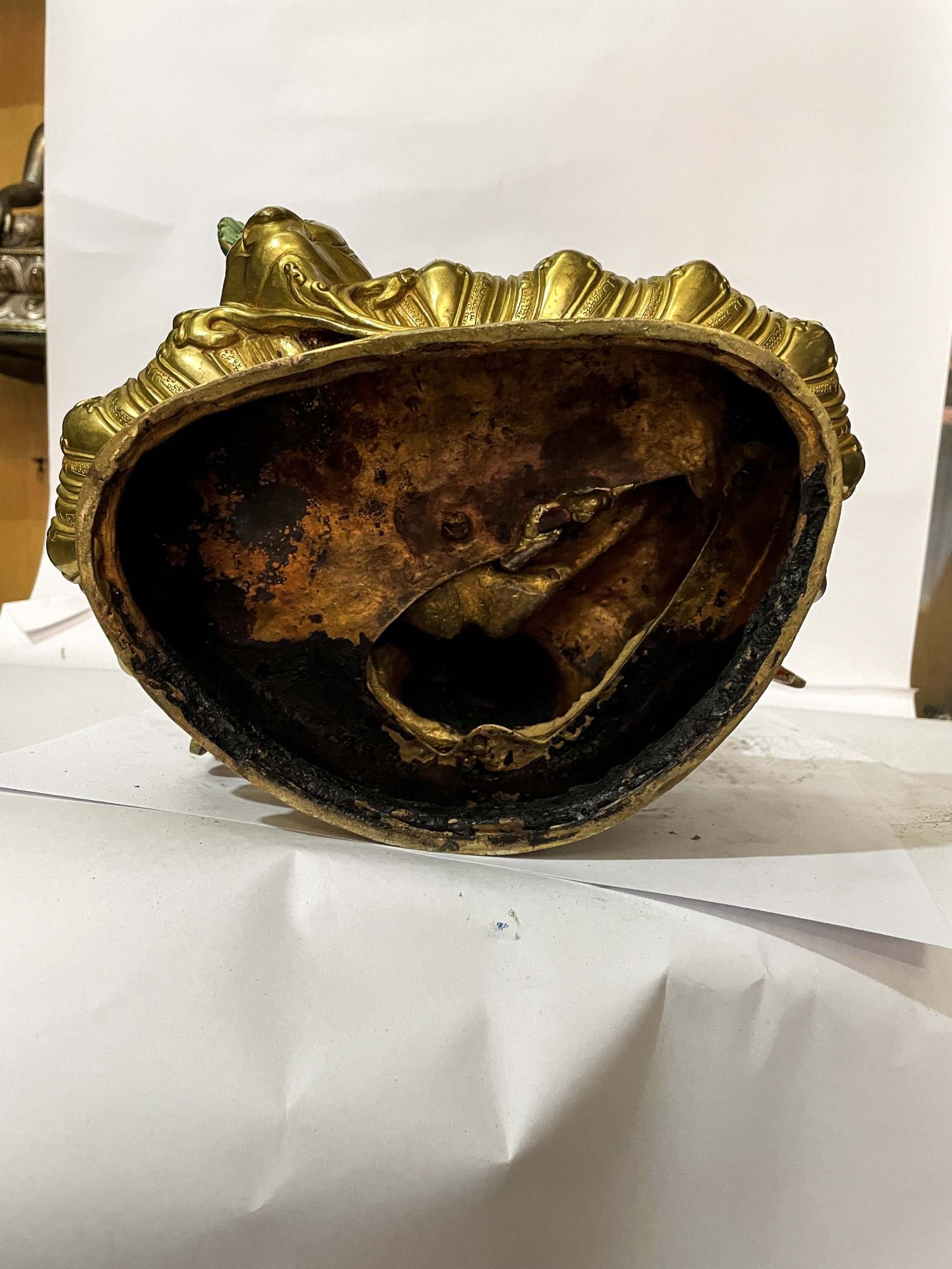 In the realm of Buddhist statues, this technique holds additional significance as it distinguishes the golden-plated body from the oxidized or maroon-painted clothing. This visual separation conveys the contrast between the divine purity of the body and the modest attire symbolizing the humble lifestyle of Buddhist monks. The partly fire gold gilding not only adds exquisite detail and elegance but also embodies the deep cultural and spiritual meaning associated with these treasured artifacts. Read More
