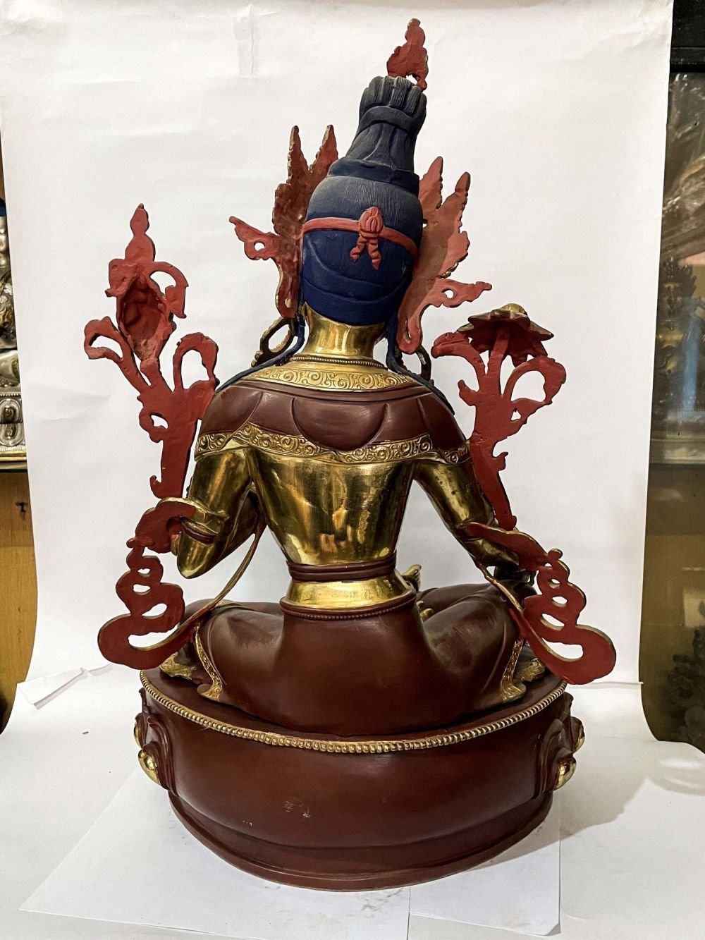 Moreover, the painted face serves as a symbolic and sacred ritual in Buddhism, preparing the statue for consecration and practice. The act of painting the face with gold in Buddhism holds deep meaning. It represents the intention to bring life and expression to the statue, imbuing it with a sense of vitality and presence. The application of gold on the face showcases the devotion and craftsmanship of the artisans, ensuring that every detail is carefully attended to honor the sacred essence of the Green Tara. Read More