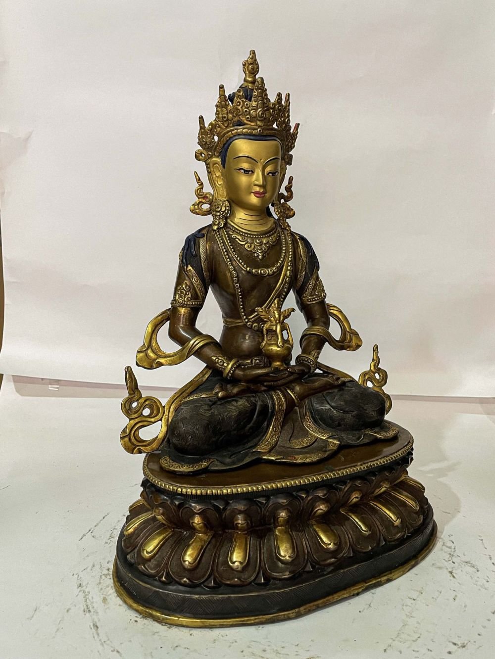 Master Quality, Buddhist Statue of Aparimita, Partly Gold Plated, Face Painted, Chepame, Amitayus , Buddha of Long Life, Wisdom, and Spiritual Vitality
