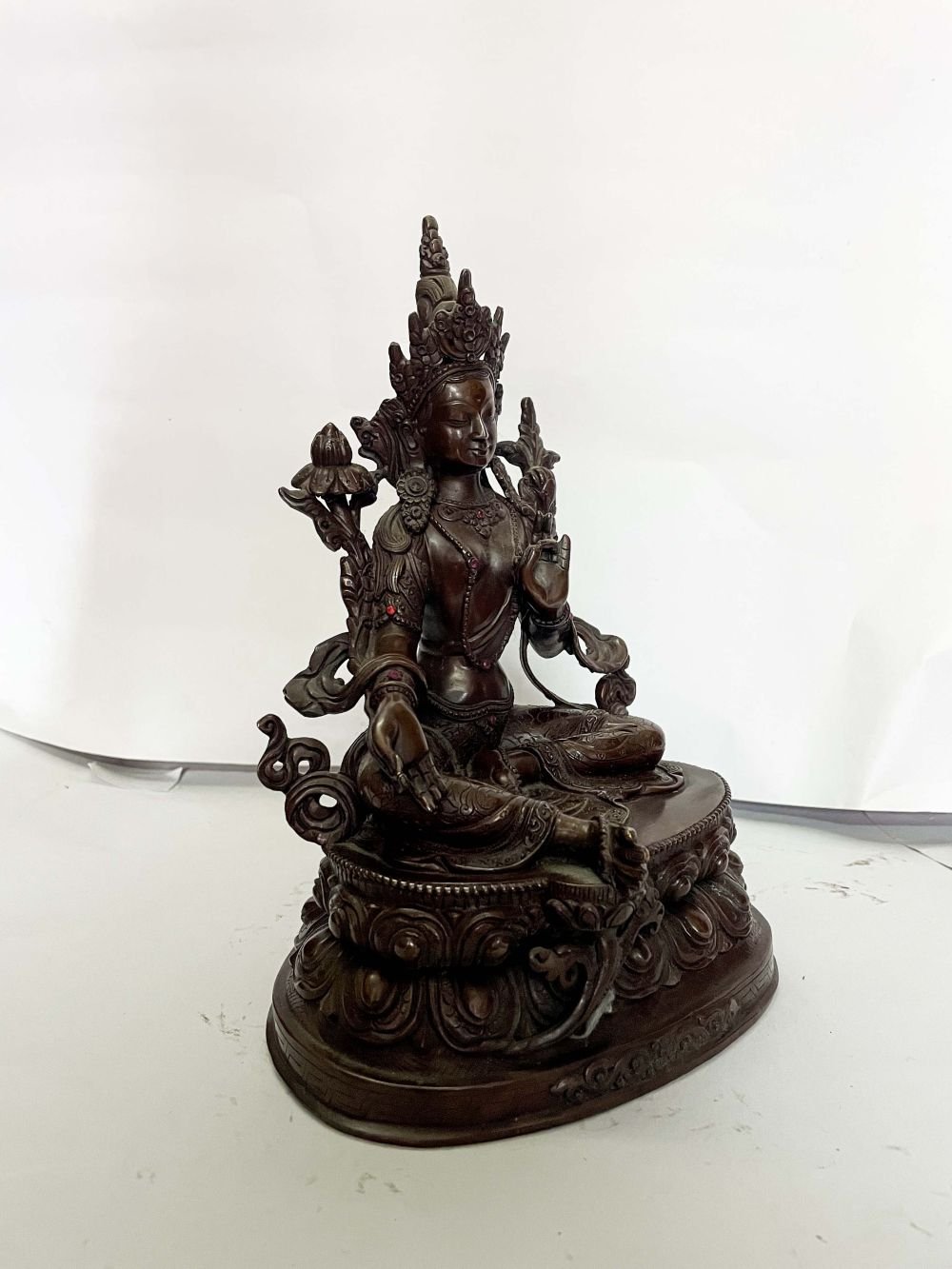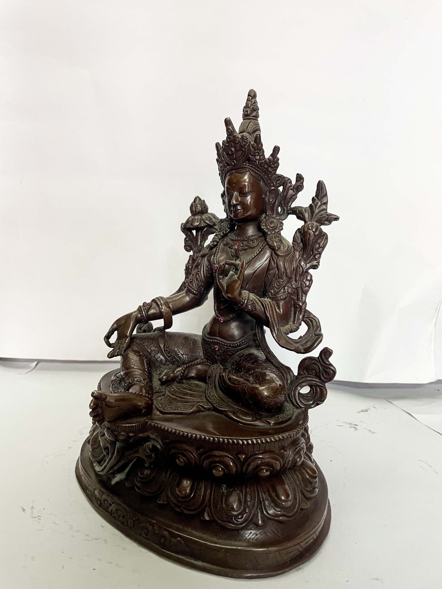 HQ, Buddhist Statue of Green Tara, Chocolate Oxidized , Goddess of Compassion, Protection, and Swift Action