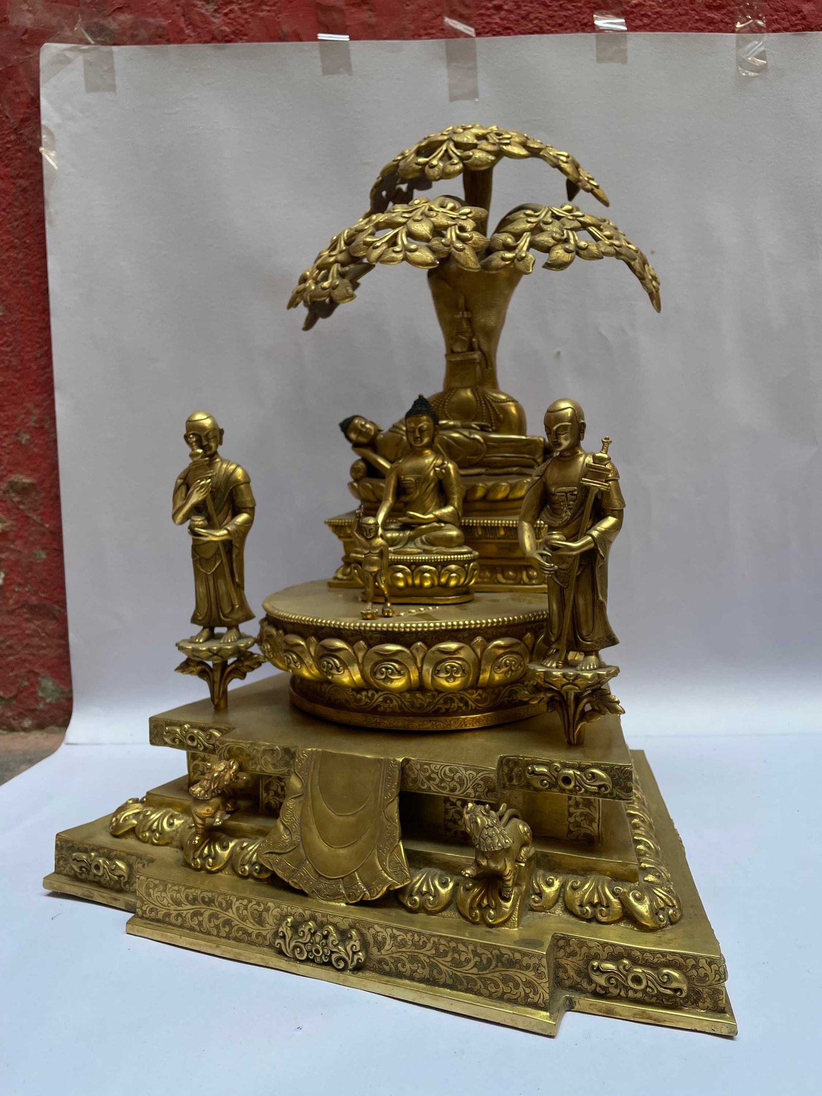 This Buddha Nirvana is finished with full gold plating. also known as mercury gold plating or fire gold plating. This traditional technique involves the application of a genuine layer of gold onto the Buddha Nirvana. Referred to as mercury gold plating, it is considered the correct and authentic form of gold plating in Nepal. Despite being more expensive than electroplating, this traditional mercury gold plating is gaining popularity again in Nepal. People are drawn to its authenticity, longevity, and the unmatched beauty it brings to the Buddha Nirvana. The resurgence of interest in this traditional form of gold plating reflects a growing appreciation for the craftsmanship and cultural heritage of Nepal Read More