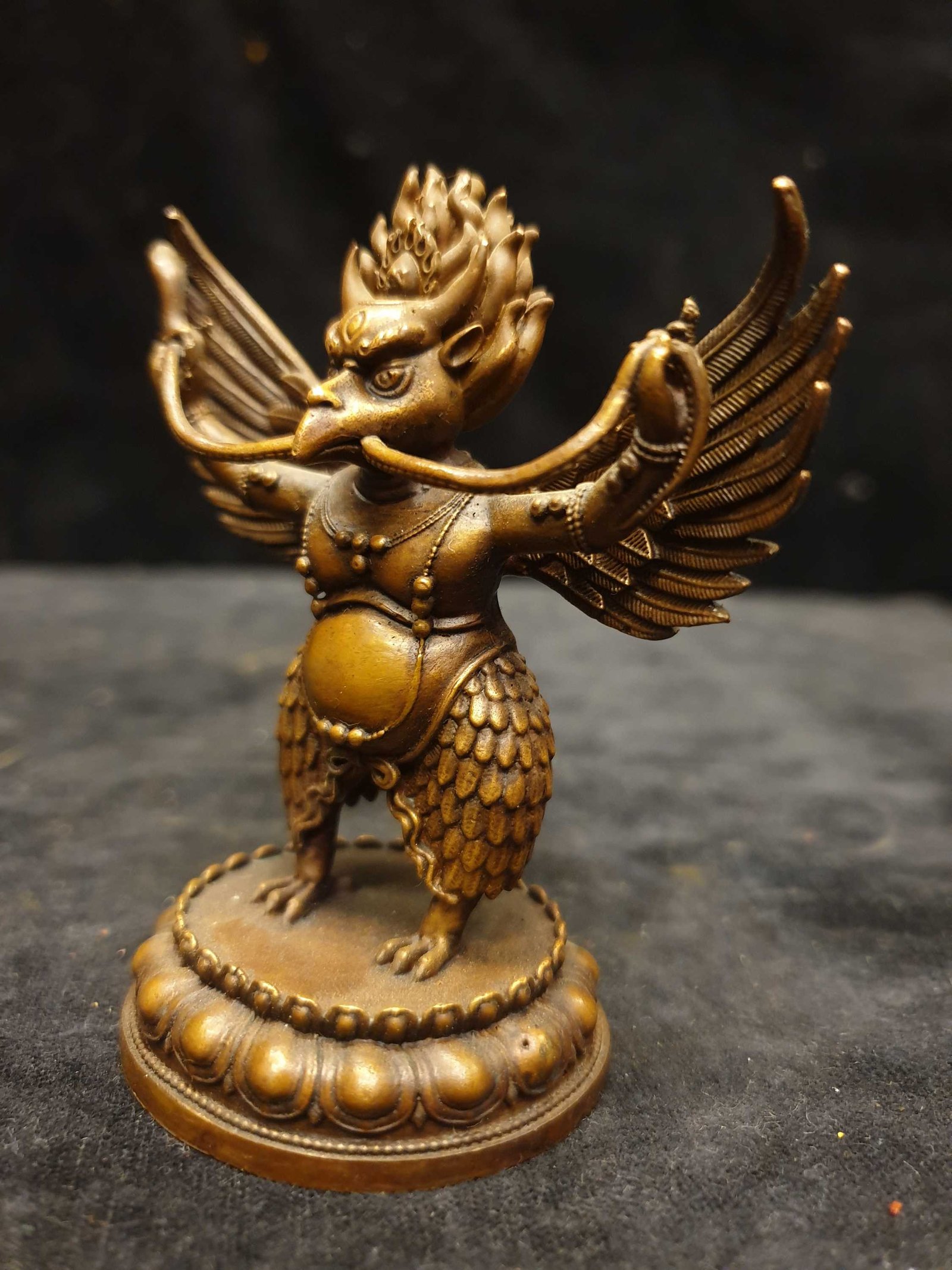 Buddhist Miniature Statue of Garuda, Chocolate Oxidized , Divine Eagle, Protector and Enemy of Evil Forces
