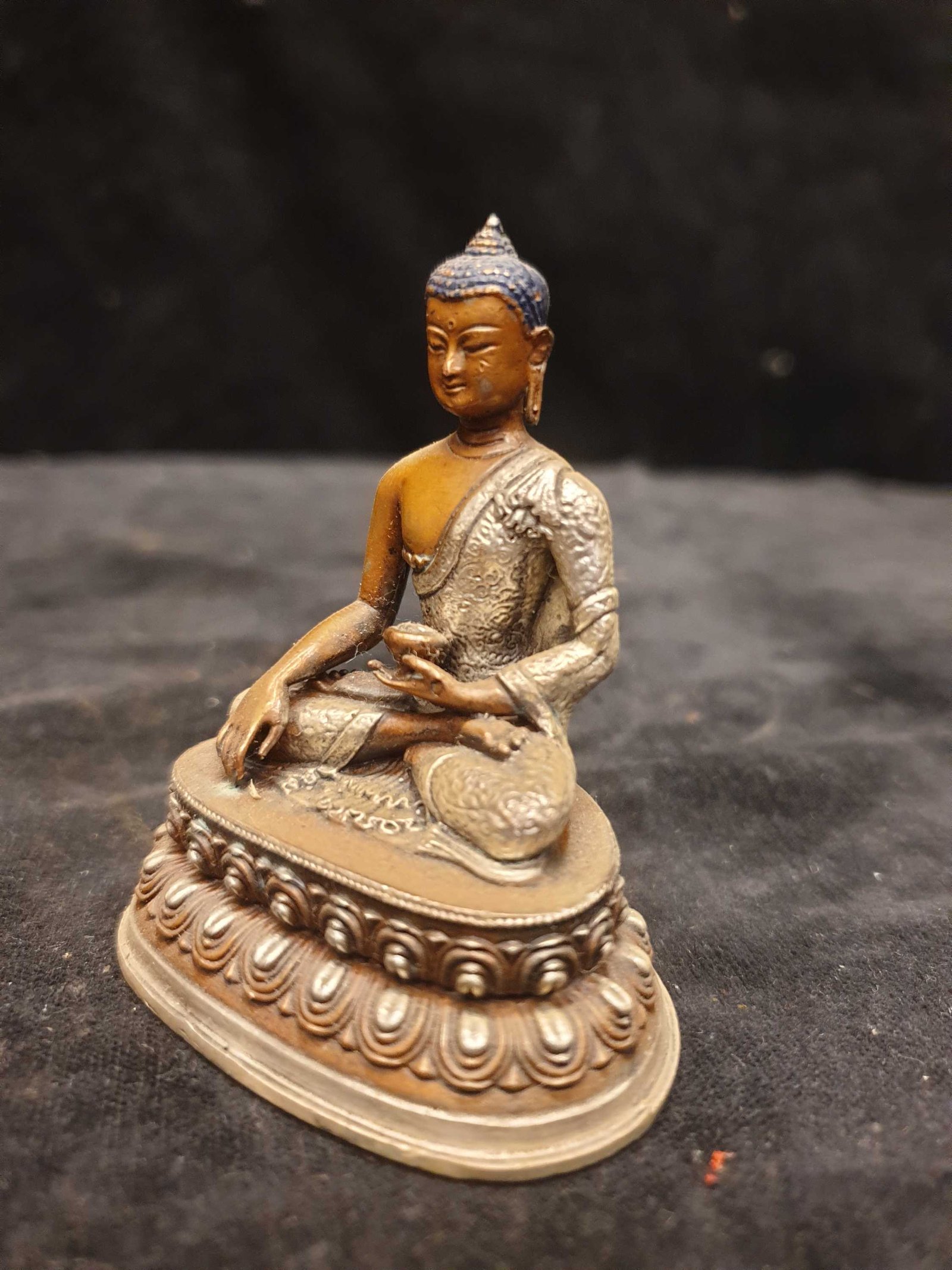 The Shakyamuni Buddha features a captivating combination of partly silver plating and dark oxidation. This unique finishing technique combines the lustrous shine of silver with the rich, deep tones achieved through oxidation. In the process of creating this finish, selected areas of the Shakyamuni Buddha are expertly silver-plated, creating a radiant and reflective surface that catches the light. The remaining areas are intentionally oxidized, resulting in a darkened patina that adds depth and character to the piece. Read More