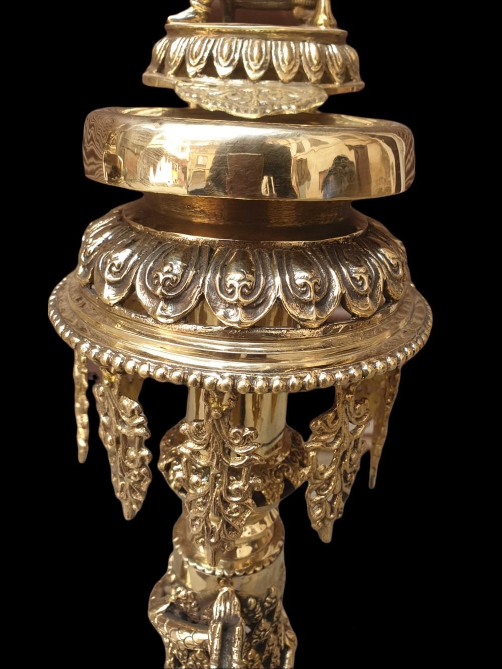 Panas is a traditional brass oil lamp that has been handcrafted and hand-carved by some of the finest artisans in Nepal. This lamp has been used in the Newar community for centuries for various purposes such as lighting homes, temples, and for positive and successful endeavors during new business openings, events, or functions. Additionally, it is also used in ritual ceremonies in Nepal.