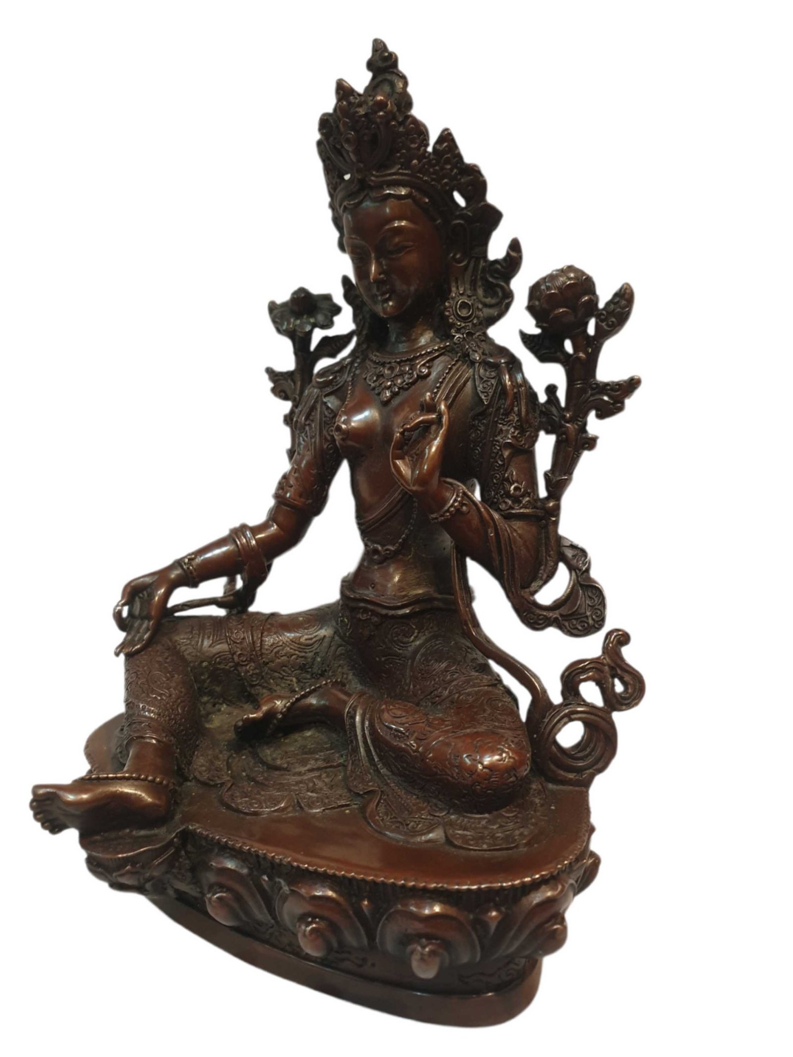 Tibetan Buddhist Statue of Green Tara, Oxidized , Goddess of Compassion, Protection, and Swift Action