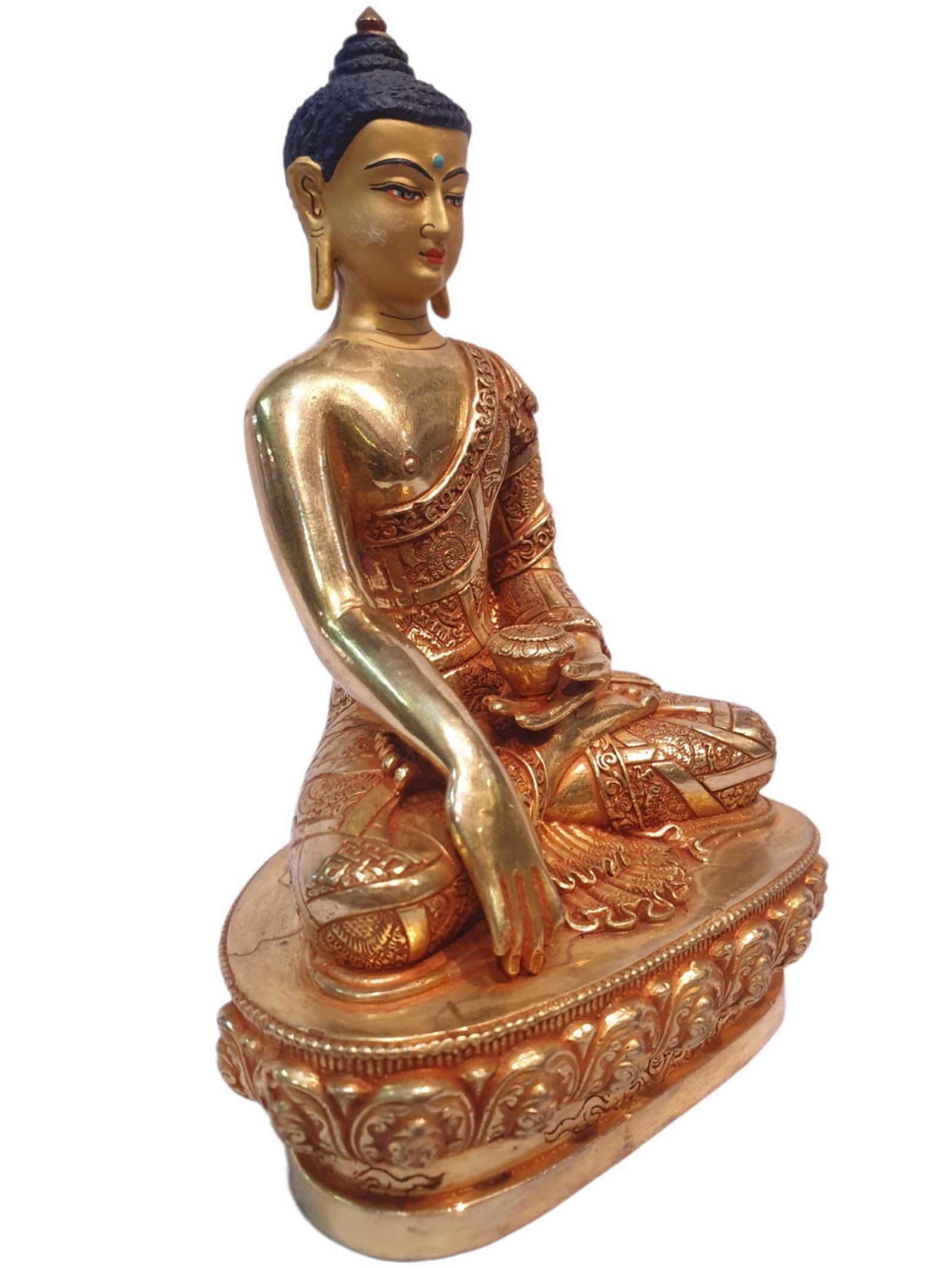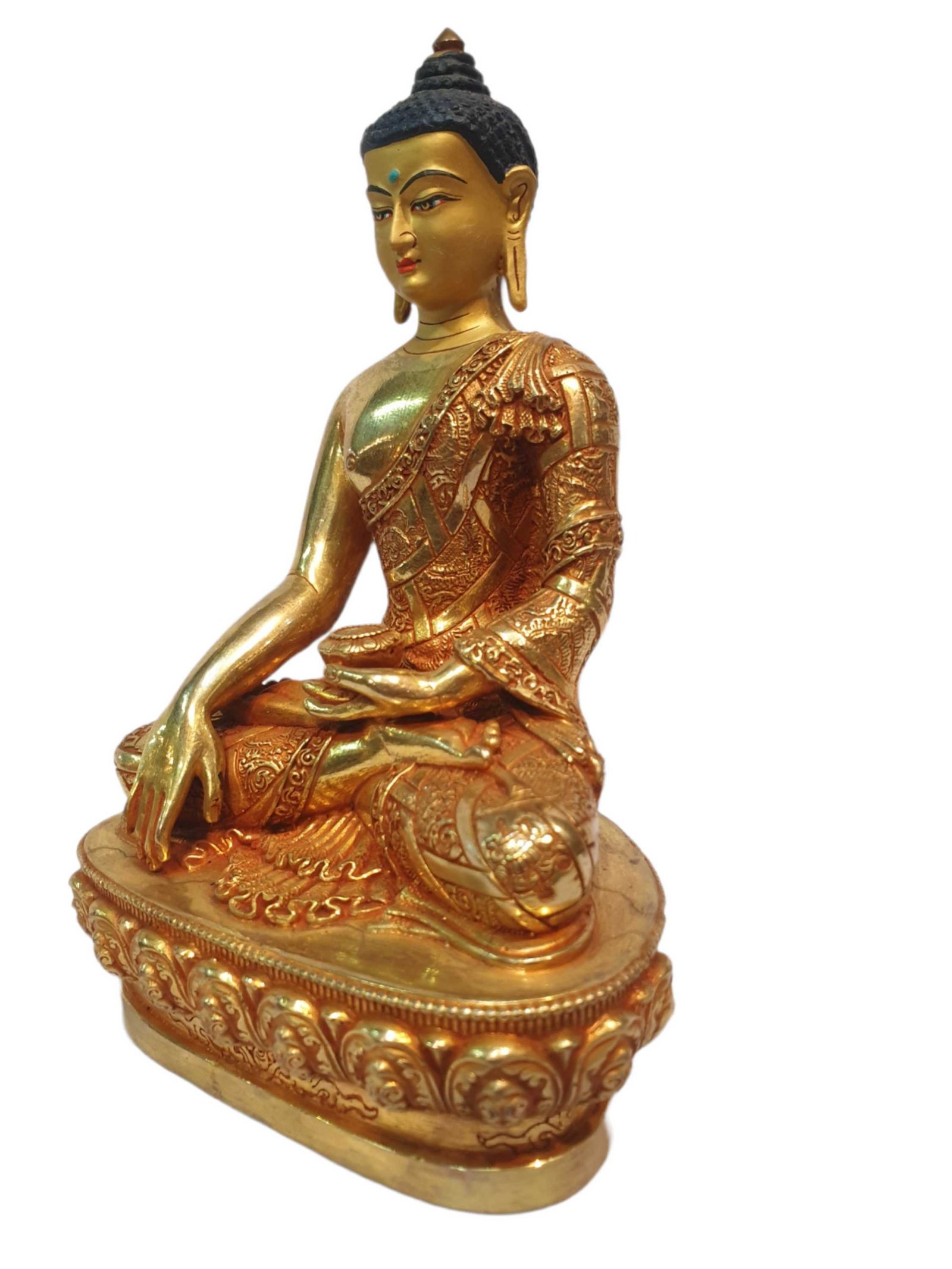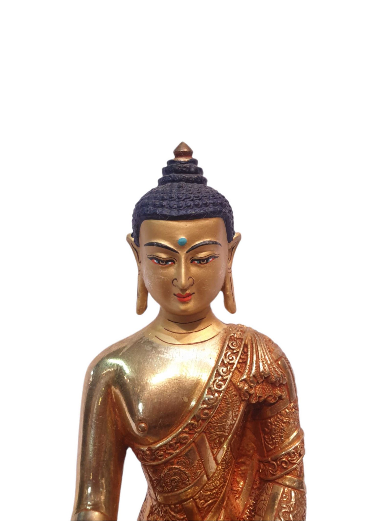 Tibetan Buddhist Statue of Shakyamuni Buddha, Full Gold Plated, and Painted Face , The Enlightened One and Teacher of Humanity