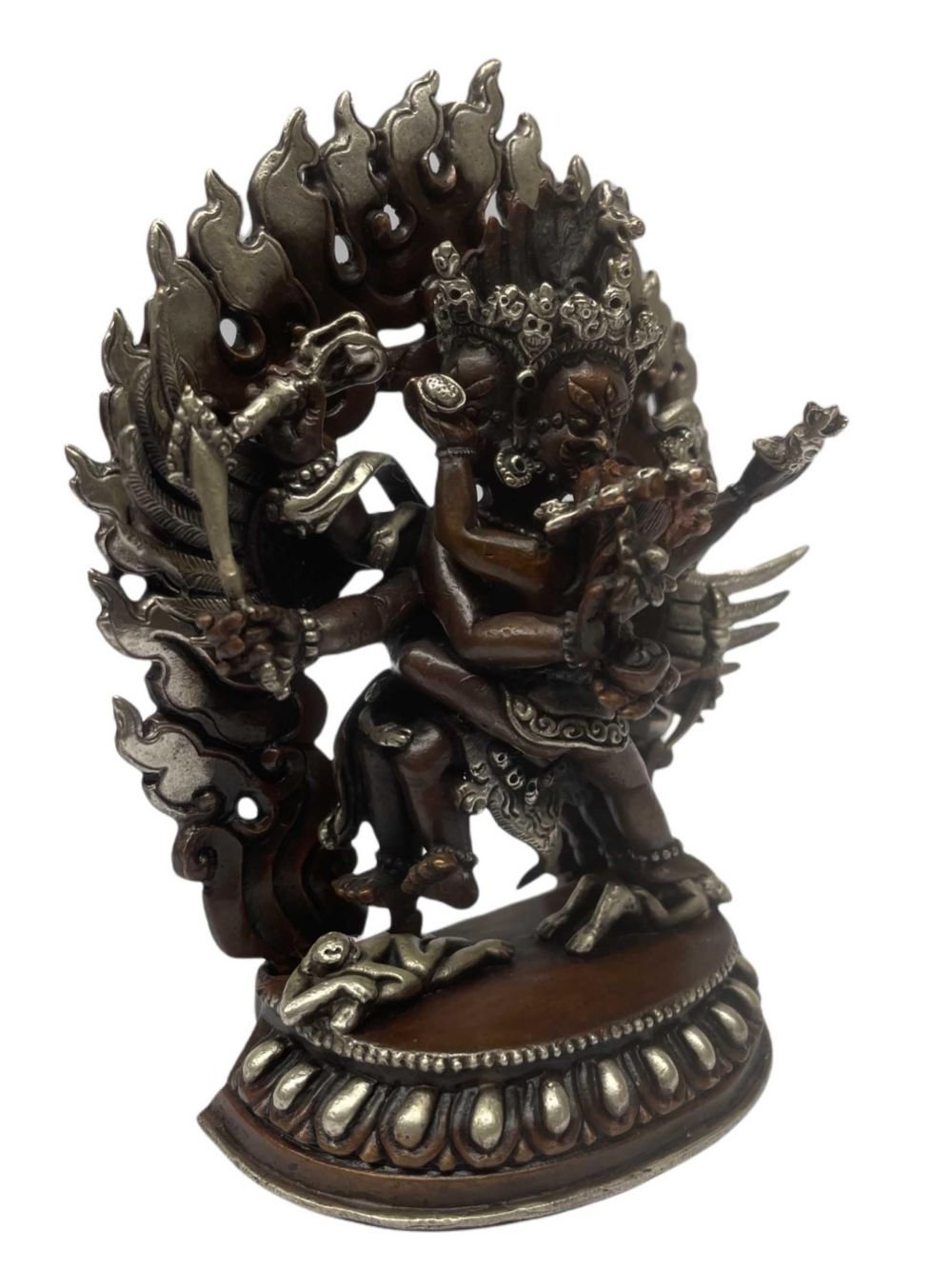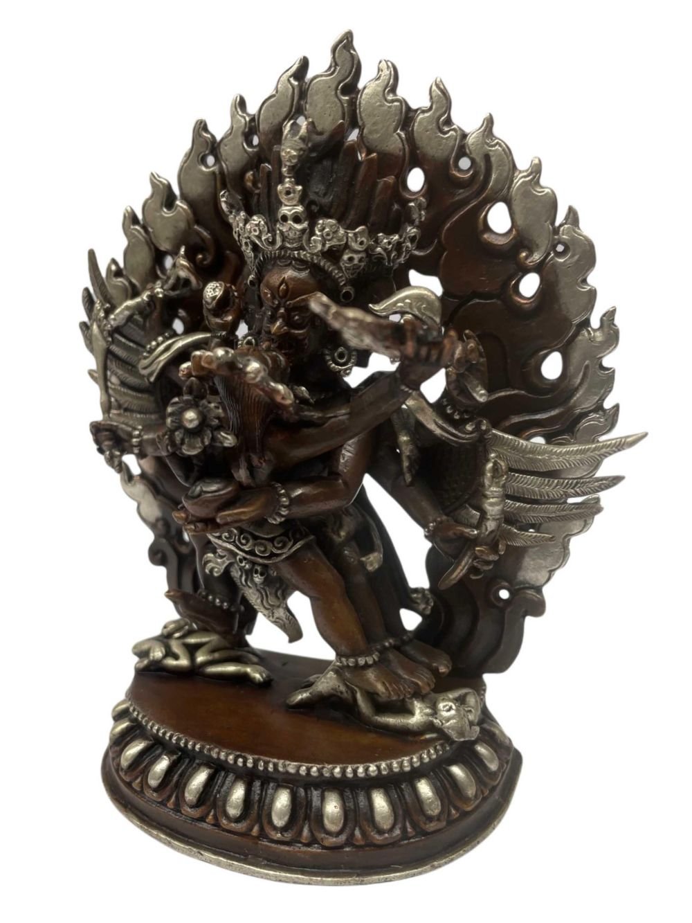 Buddhist Statue Miniature Statue of, Hayagriva, Silver and Chocolate Oxidized , Horse-Headed Buddha, Protector of Wisdom and Knowledge