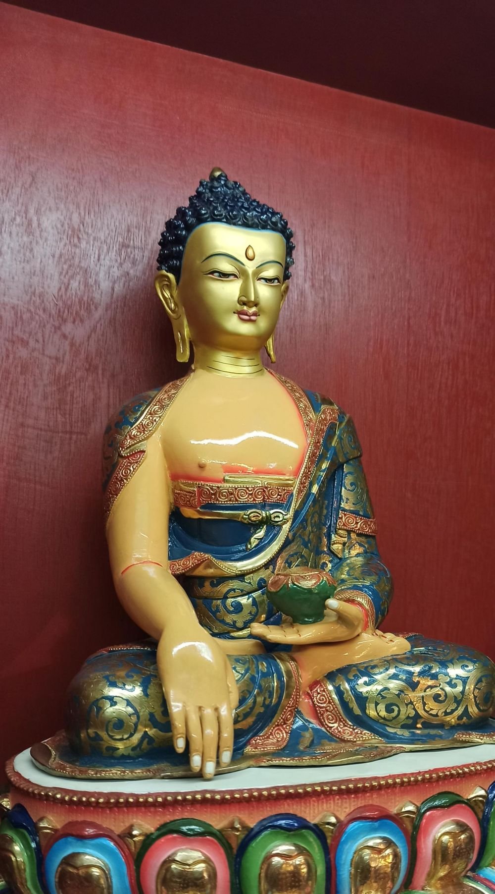 The Shakyamuni Buddha is adorned with traditional colors, creating a captivating aesthetic through a combination of gold and various hues. This painting technique follows a time-honored process that aims to faithfully represent the Shakyamuni Buddha in accordance with traditional color descriptions. In the context of Buddhist statues, this approach holds great significance. Each statue has its own primary color, and it is crucial to depict the statue in its authentic shade. Read More
