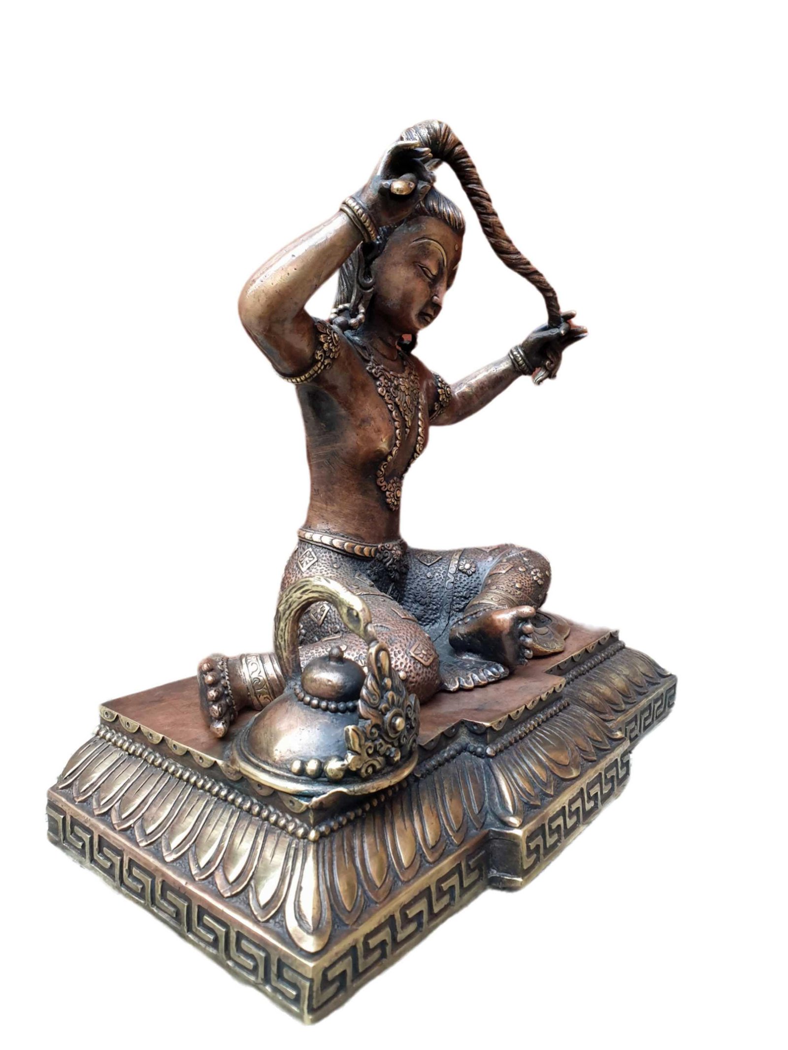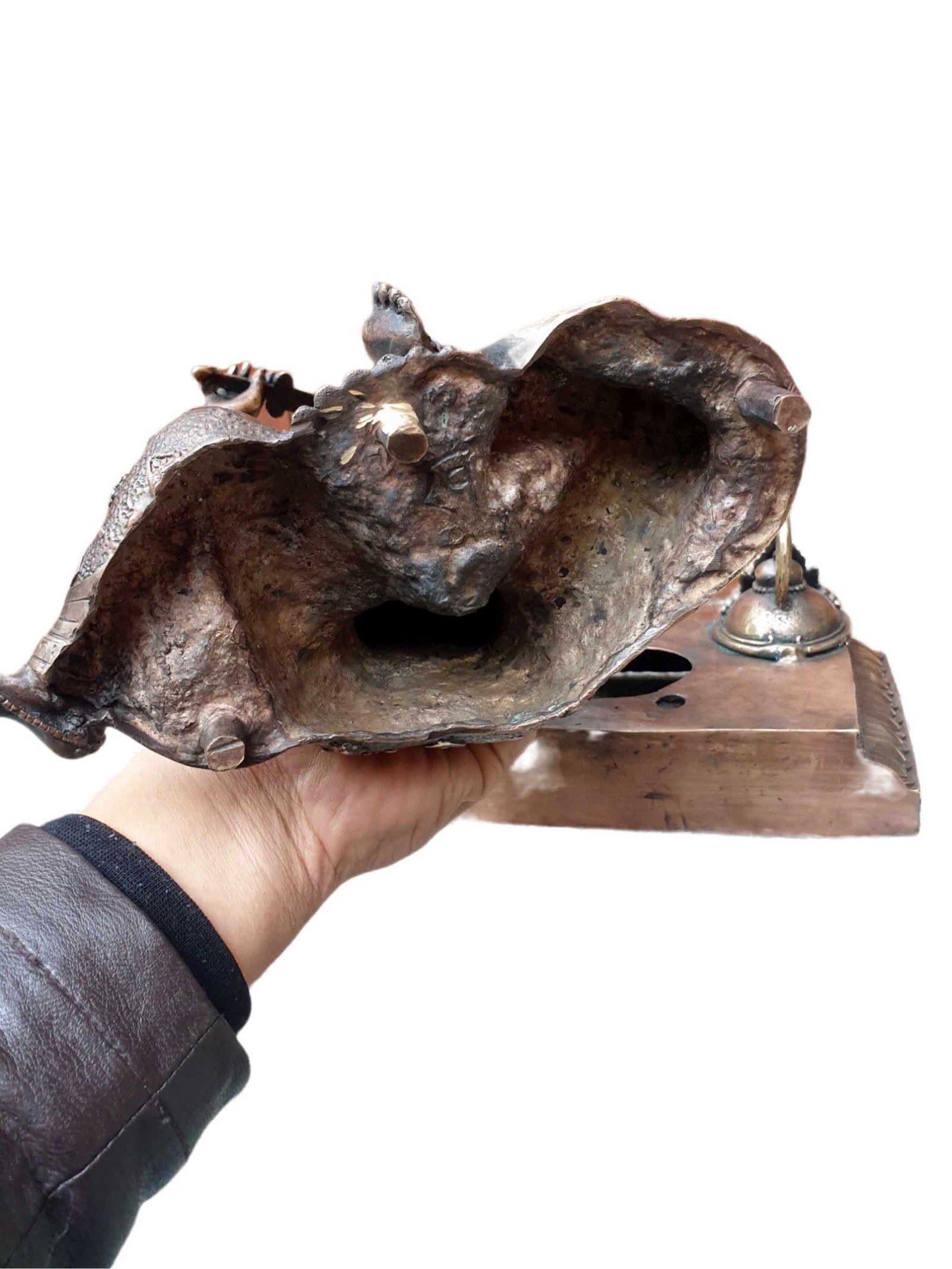 This Buddha is made by the process of the Lost-Wax system. The lost-wax process, also known as investment casting, is a time-honored technique used to create metal sculptures. It involves several steps that have been practiced for thousands of years. Skilled artisans begin by sculpting a detailed wax model, capturing every intricate detail of the desired sculpture. The wax model is then coated with a ceramic shell, formed by multiple layers of ceramic material. Once the shell has cured, the wax is melted and drained out, leaving behind a cavity. Molten metal is poured into the cavity, creating a precise replica of the original wax model. After the metal has cooled and solidified, the ceramic shell is carefully removed, revealing the final metal sculpture. Read More