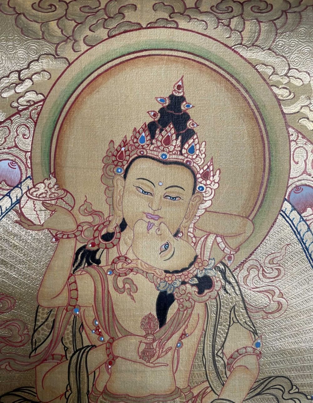 Tibetan Buddhist Thangka of Vajrasattva, Real 24k Gold, Hand Painted , Purifier of karma, embodying purity and enlightenment
